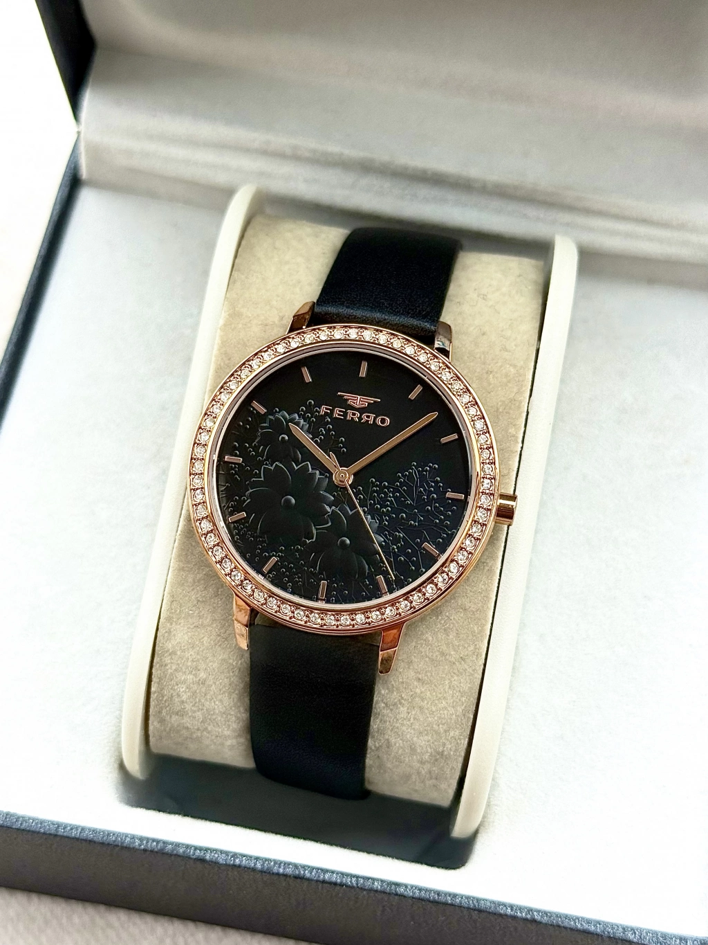 Ferro Black Leather Band Women's Wristwatch FL21242B-R