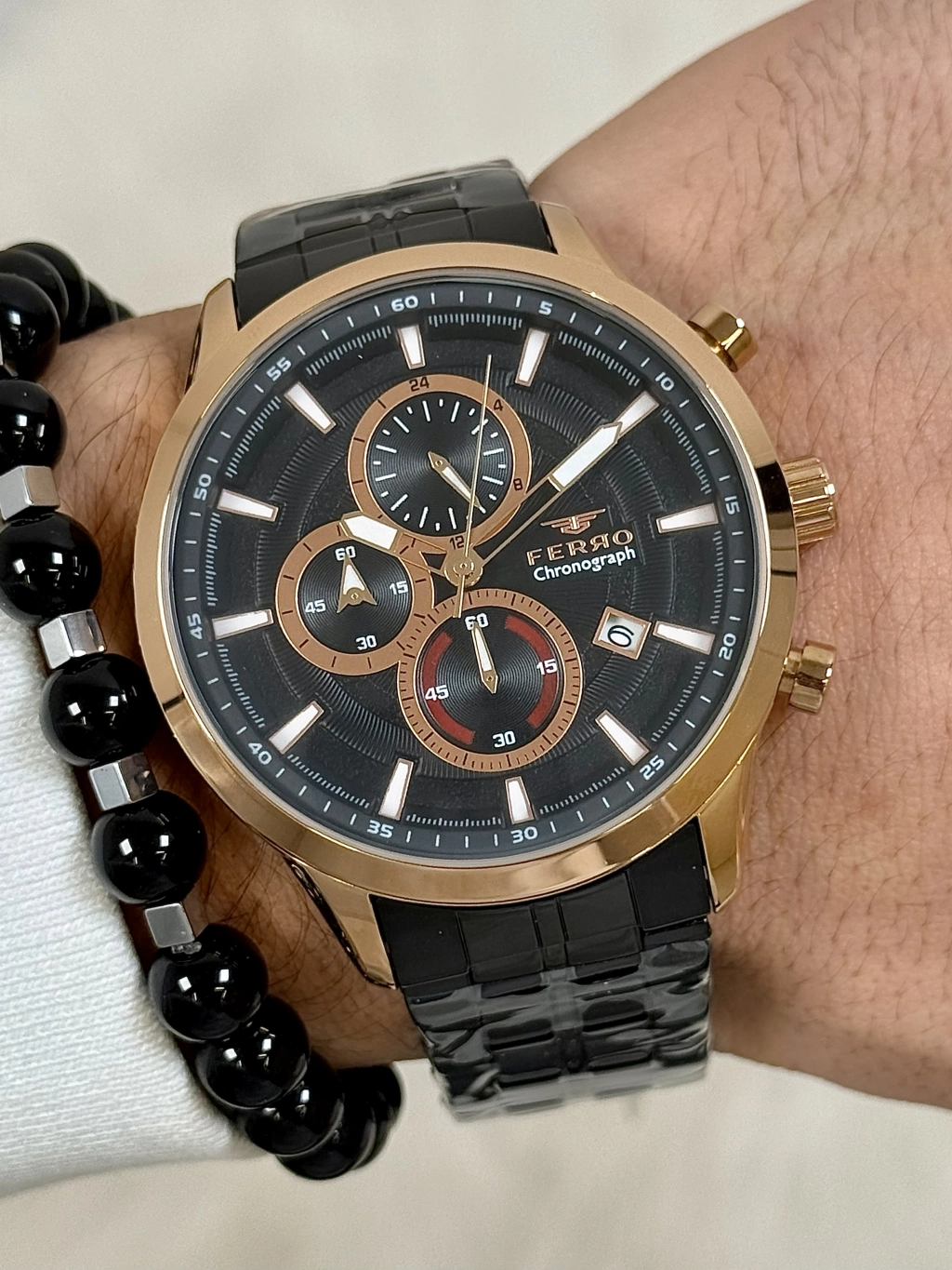 Ferro FM31277A-R Black Steel Strap Men's Wristwatch at Ferro Time