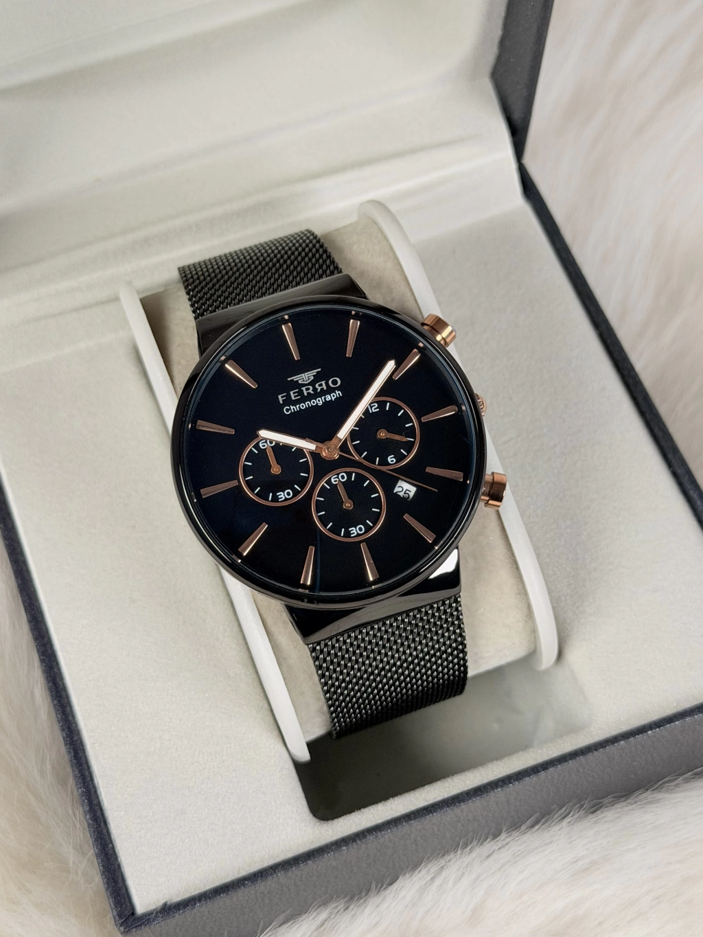 Ferro FM1697C-G Black Mesh Strap Men's Wristwatch at Ferro Time