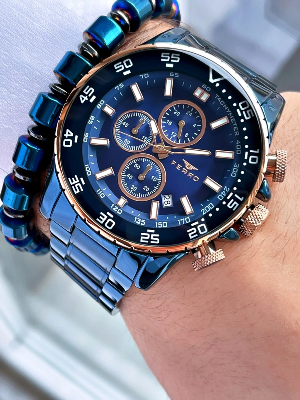 Ferro FM1542A-T Navy Blue Steel Strap Men's Wristwatch at Ferro Time