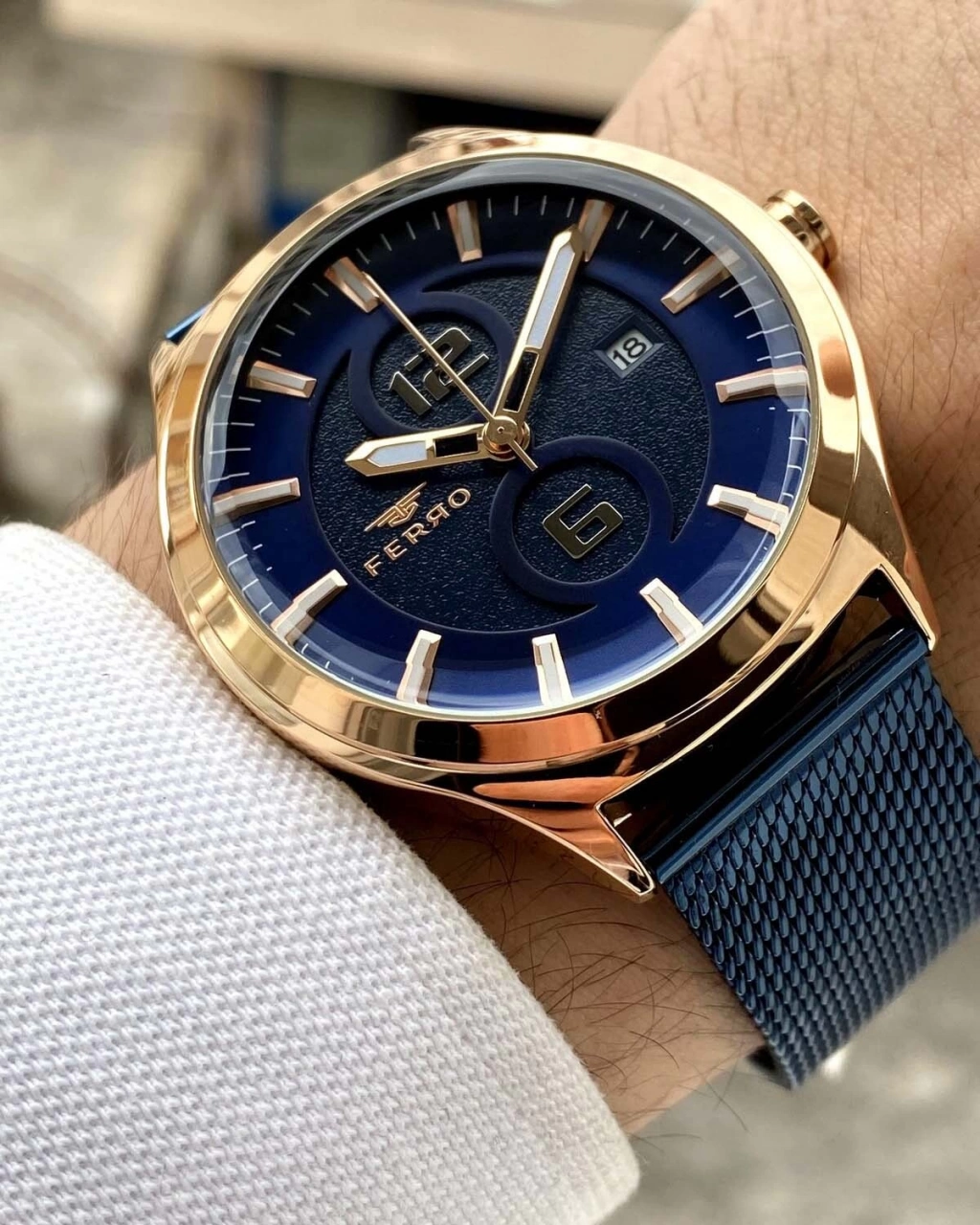Ferro F11090C-T Navy Blue Mesh Strap Men's Wristwatch at Ferro Time