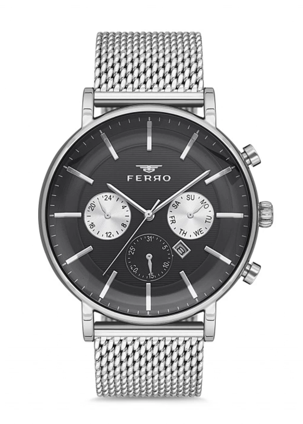 Ferro Gümüş Çelik Kordon Erkek Kol Saati FM43027A-A7 Tüm Fonksiyonlar Aktif 3ATM Su Geçirmez