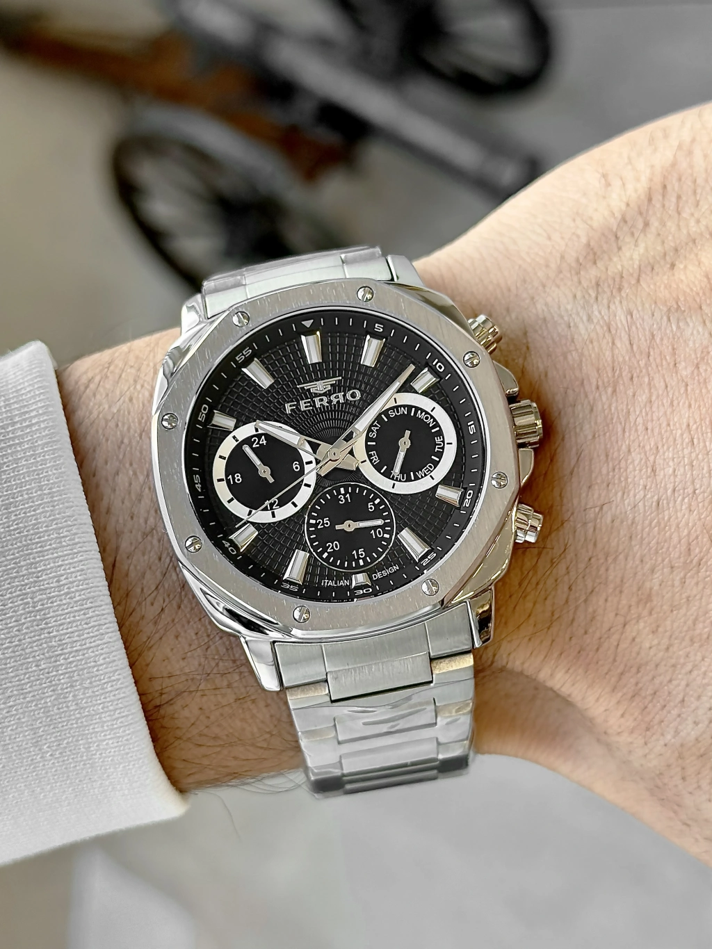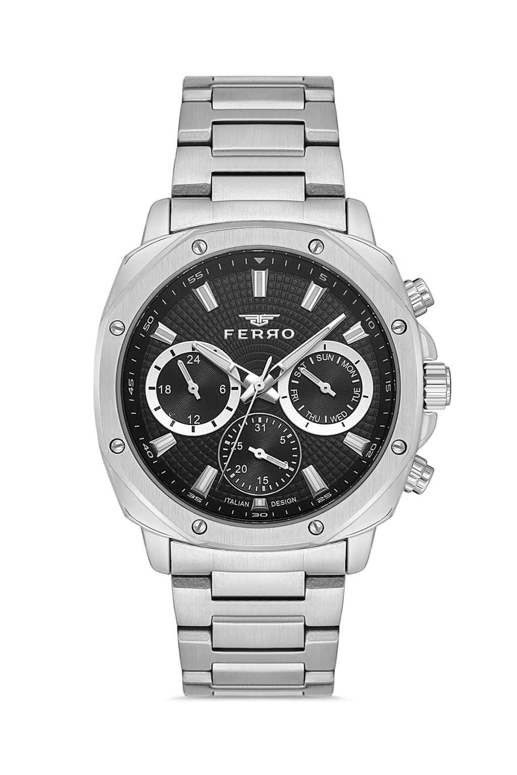 FERRO Ferro Gümüş Çelik Kordon Erkek Kol Saati FM11652A-A2 Fonksiyonları Aktif 3 ATM Su Geçirmez — Işıltılı Stil, Zarif Dokunuş