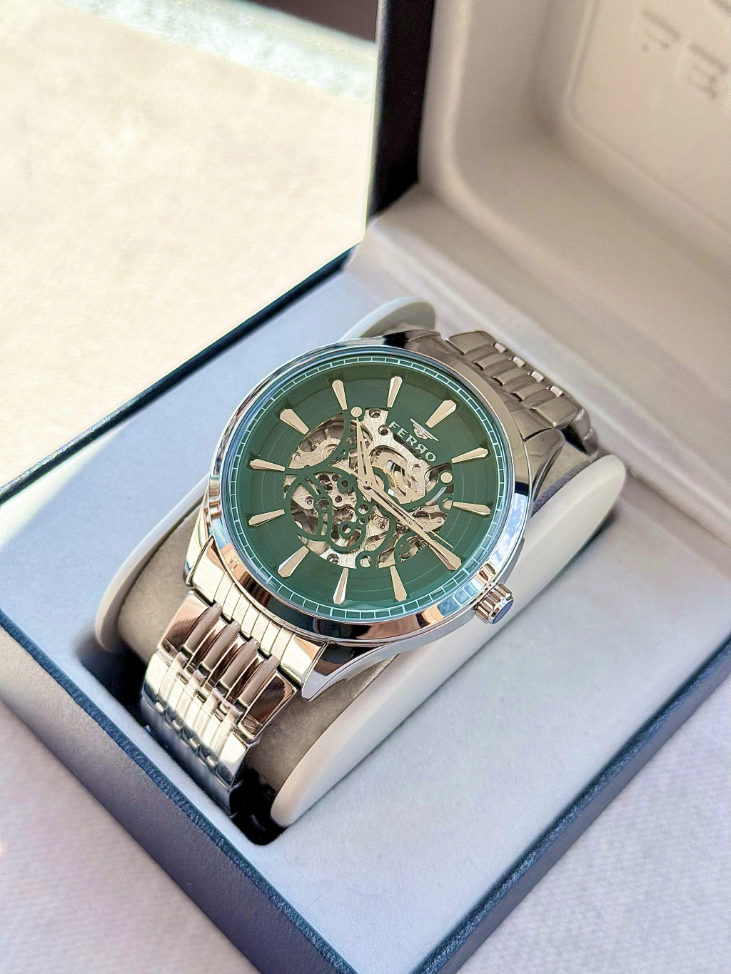 FERRO Ferro Gümüş Çelik Kordon Erkek Kol Saati FM31440A-A6 Otomatik Makine 3 ATM Su Geçirmez Hediye Paketli — Işıltılı Stil, Zarif Dokunuş