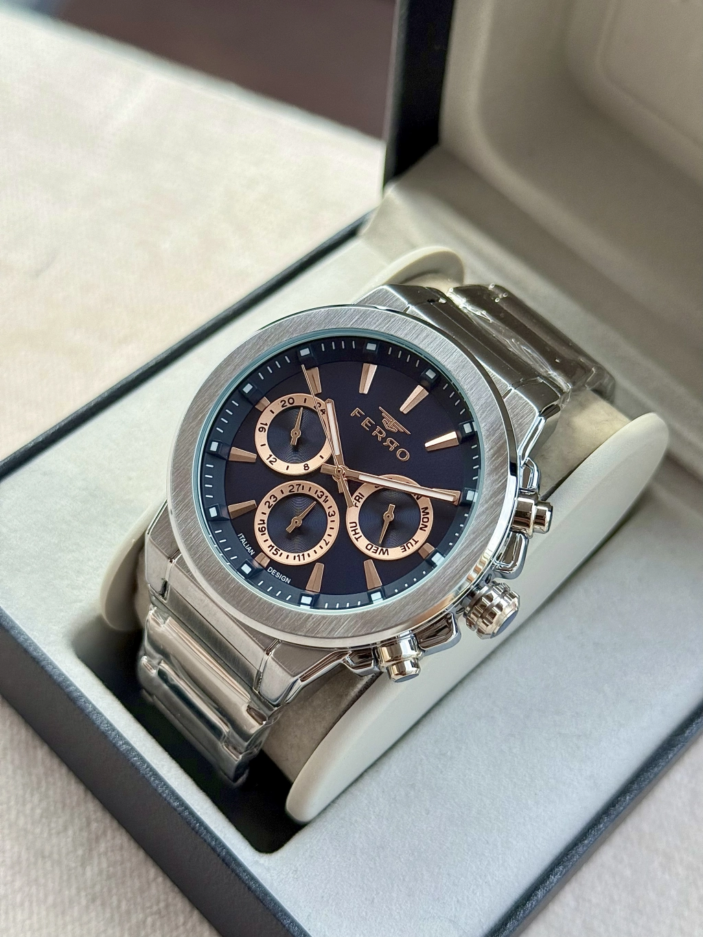 Günün her anında zarafetle taşıyabileceğiniz bu saat, ofisten davete kadar stilinizi tamamlar. Ferro ile zamanı değil, tarzınızı seçin.