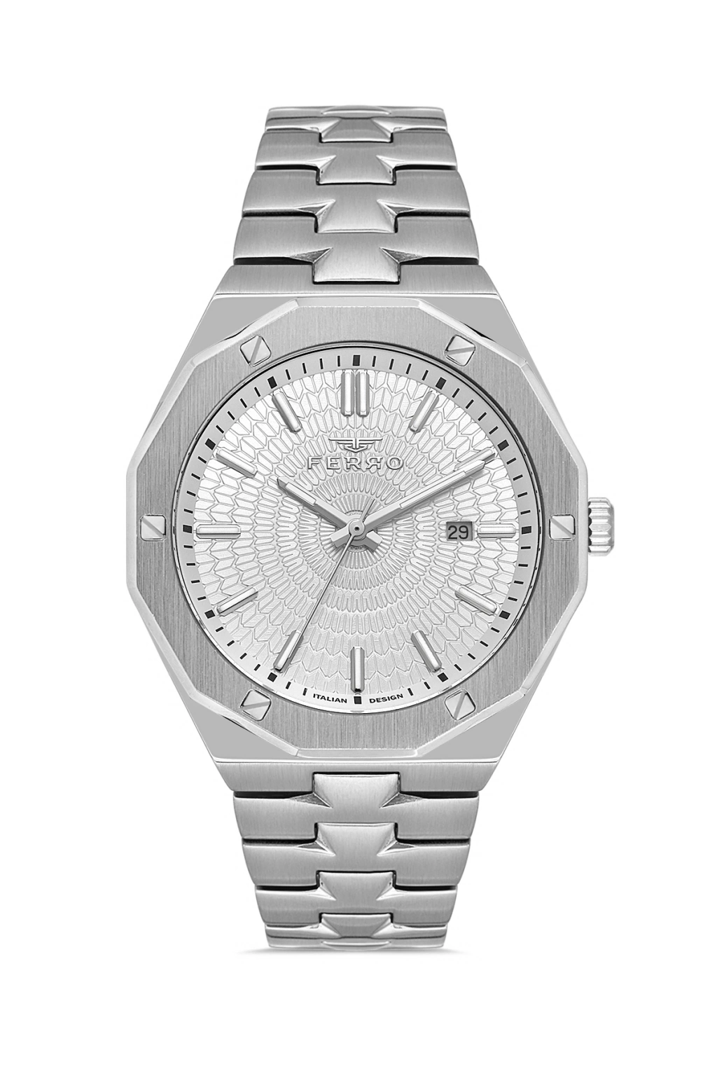 FERRO Ferro Gümüş Çelik Kordon Erkek Kol Saati FM43015A-A Tüm Fonksiyonlar Aktif 3 ATM Su Geçirmez — Işıltılı Stil, Zarif Dokunuş