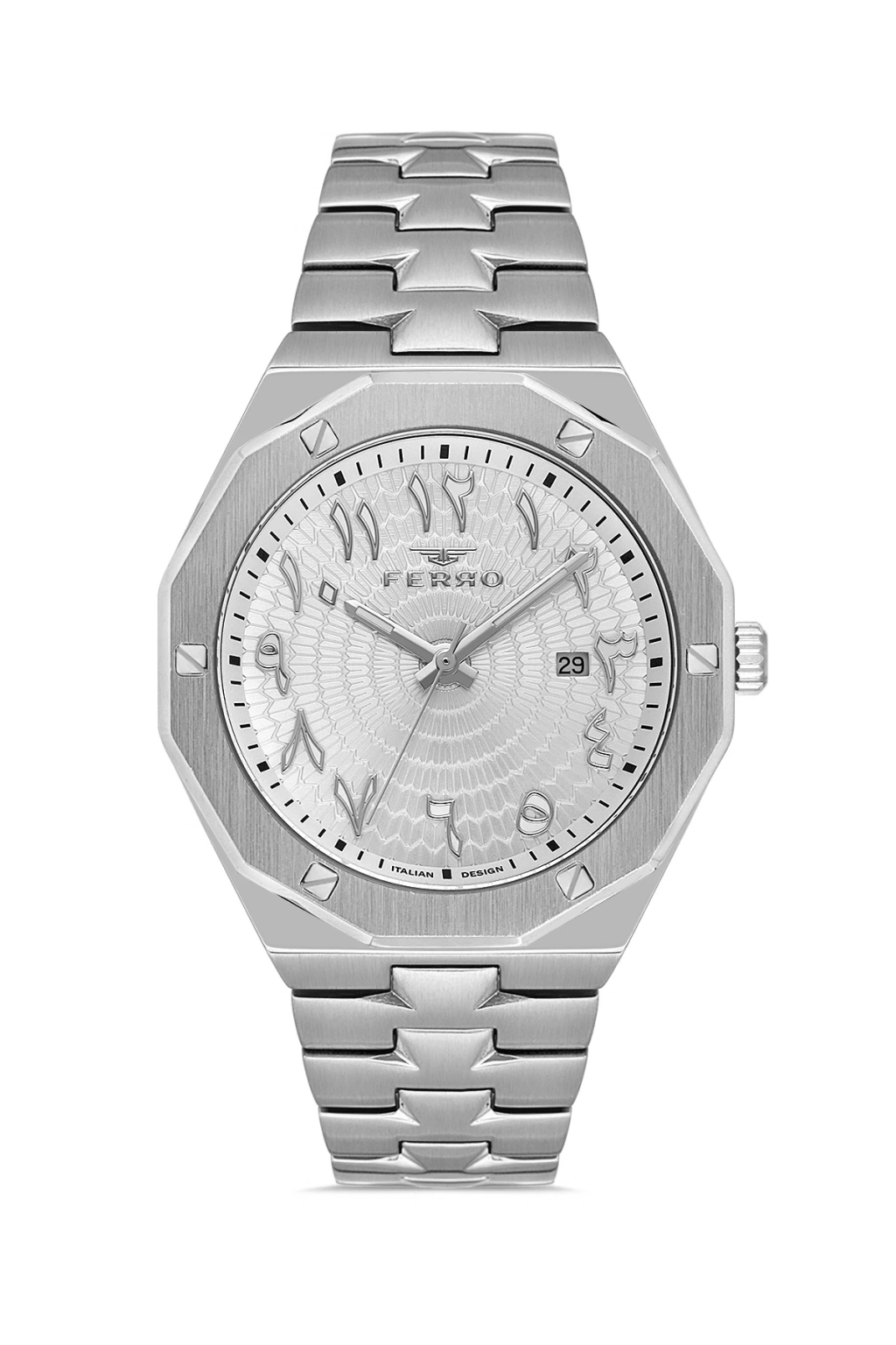 FERRO Ferro Gümüş Çelik Kordon Erkek Kol Saati FM43016A-A Tüm Fonksiyonlar Aktif 3 ATM Su Geçirmez — Işıltılı Stil, Zarif Dokunuş