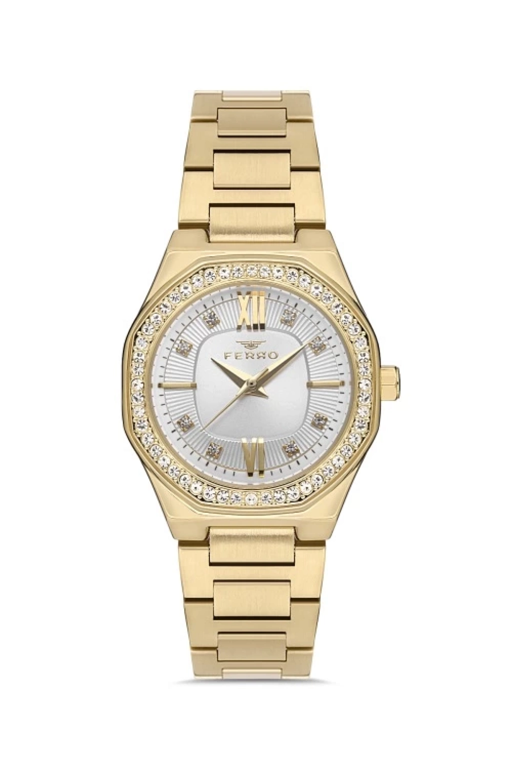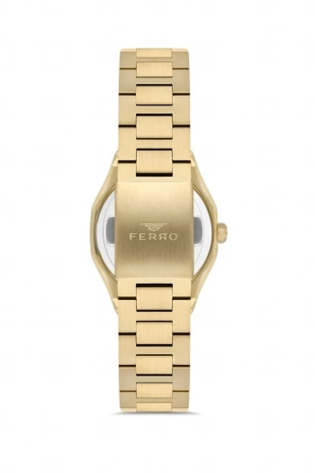 Ferro Sarı Çelik Kordon Kadın Kol Saati FL43028A-B4 3ATM Su Geçirmez 2 Yıl Garantili HediyePaketli