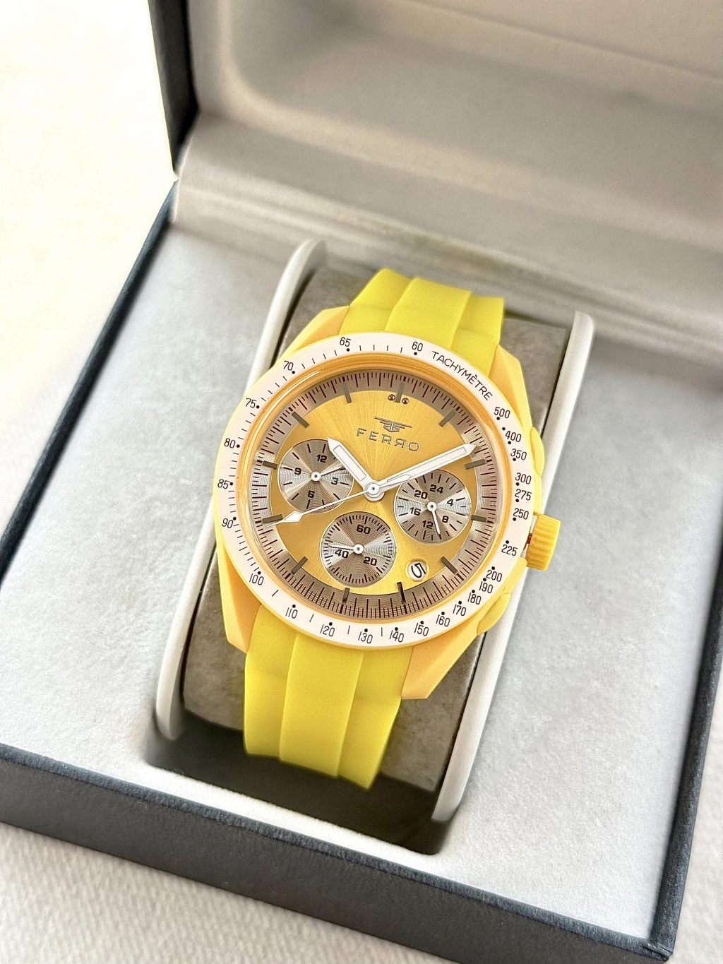 FERRO Ferro Sarı Silikon Kordon Kol Saati FM11401D-ZS Fonksiyonları Aktif 3ATM Su Geçirmez HediyePaket — Işıltılı Stil, Zarif Dokunuş