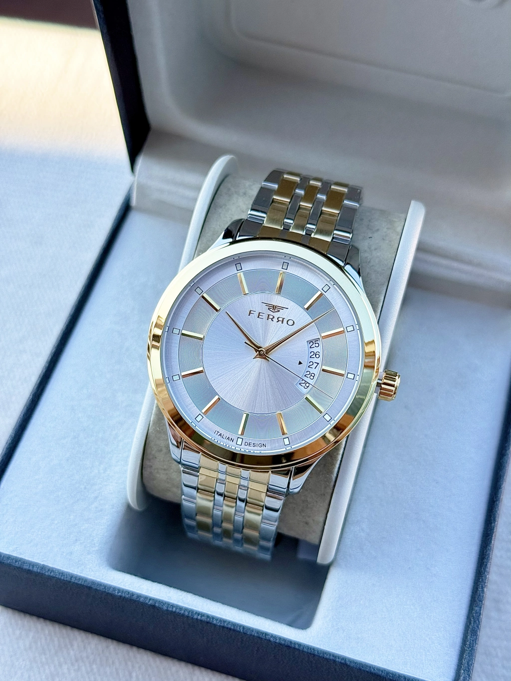 FERRO Ferro Sarı ve Gümüş Çelik Kordon Erkek Kol Saati F11561AWT-D 3ATM Su Geçirmez 2 Yıl Garantili — Işıltılı Stil, Zarif Dokunuş