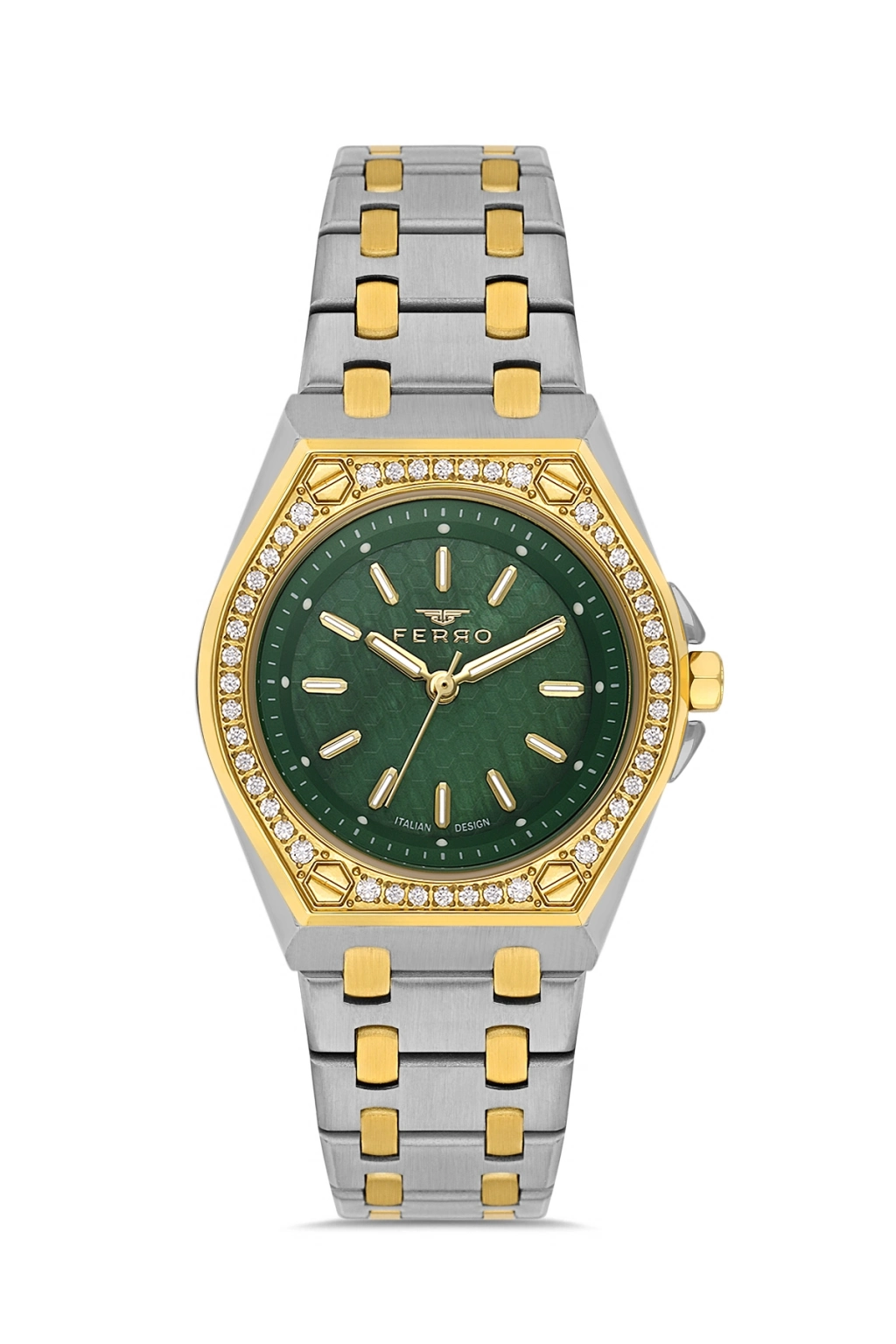 FERRO Ferro Sarı ve Gümüş Kordon Çelik Kordon Kadın Kol Saati FL21609A-D6 3ATM SuGeçirmez 2 YılGarantili — Işıltılı Stil, Zarif Dokunuş