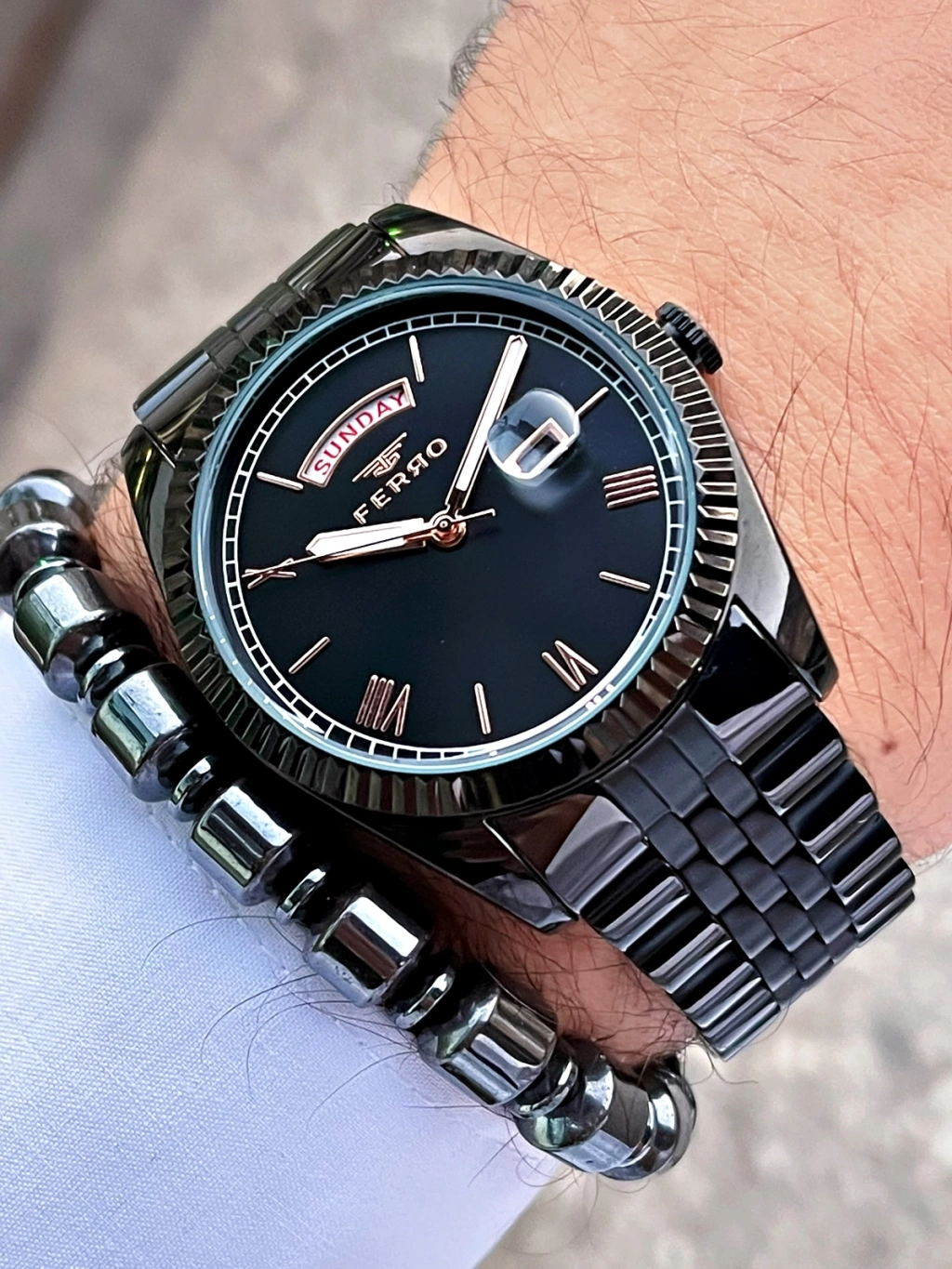 FERRO Ferro Siyah Çelik Kordon Erkek Kol Saati F11130AWT-G 3 ATM Su Geçirmez 2 Yıl Garantili HediyePaketli — Işıltılı Stil, Zarif Dokunuş