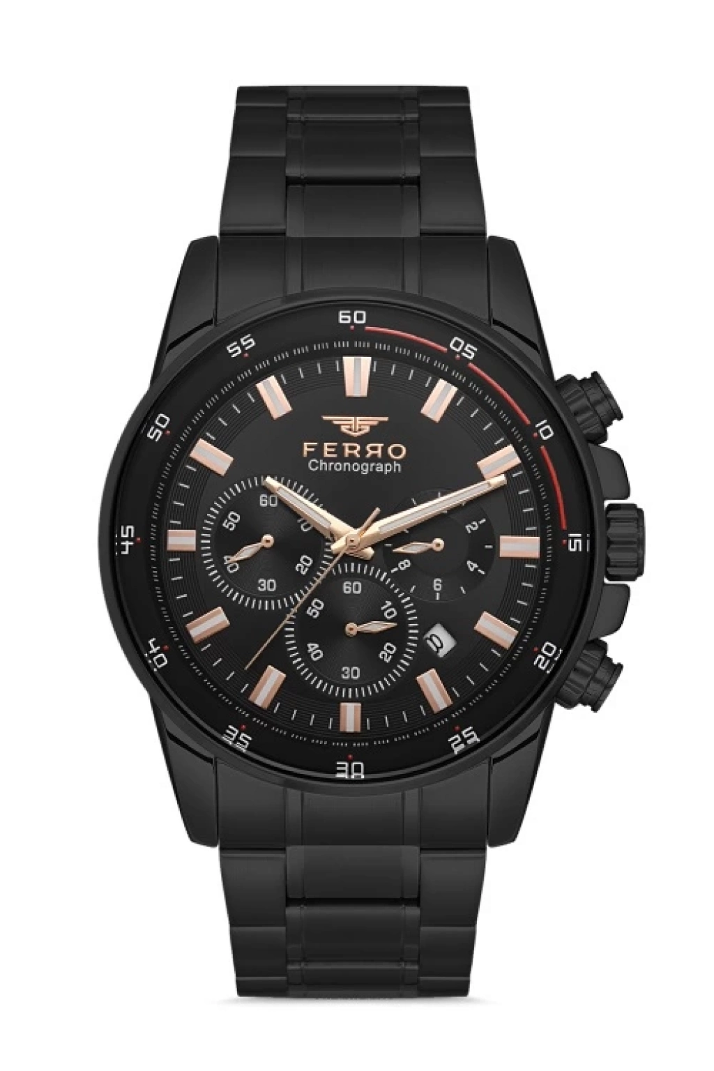 Ferro Siyah Çelik Kordon Erkek Kol Saati FM43031A-V Tüm Fonksiyonlar Aktif 3ATM Su Geçirmez