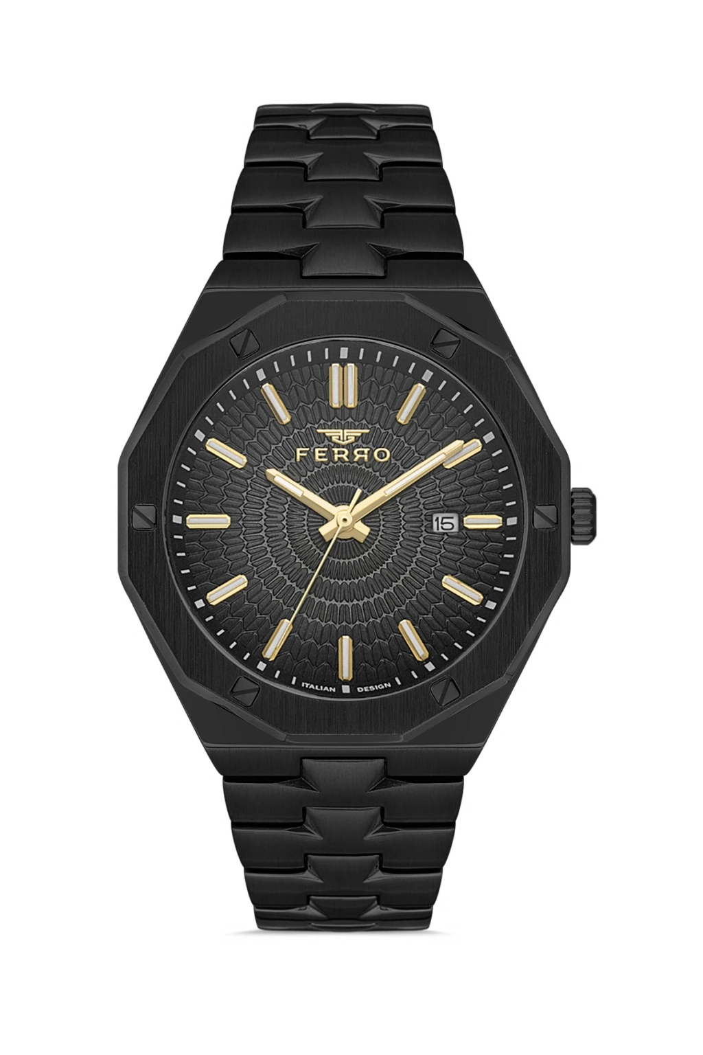 FERRO Ferro Siyah Çelik Kordon Erkek Kol Saati FM43015A-A Tüm Fonksiyonlar Aktif 3 ATM Su Geçirmez — Işıltılı Stil, Zarif Dokunuş