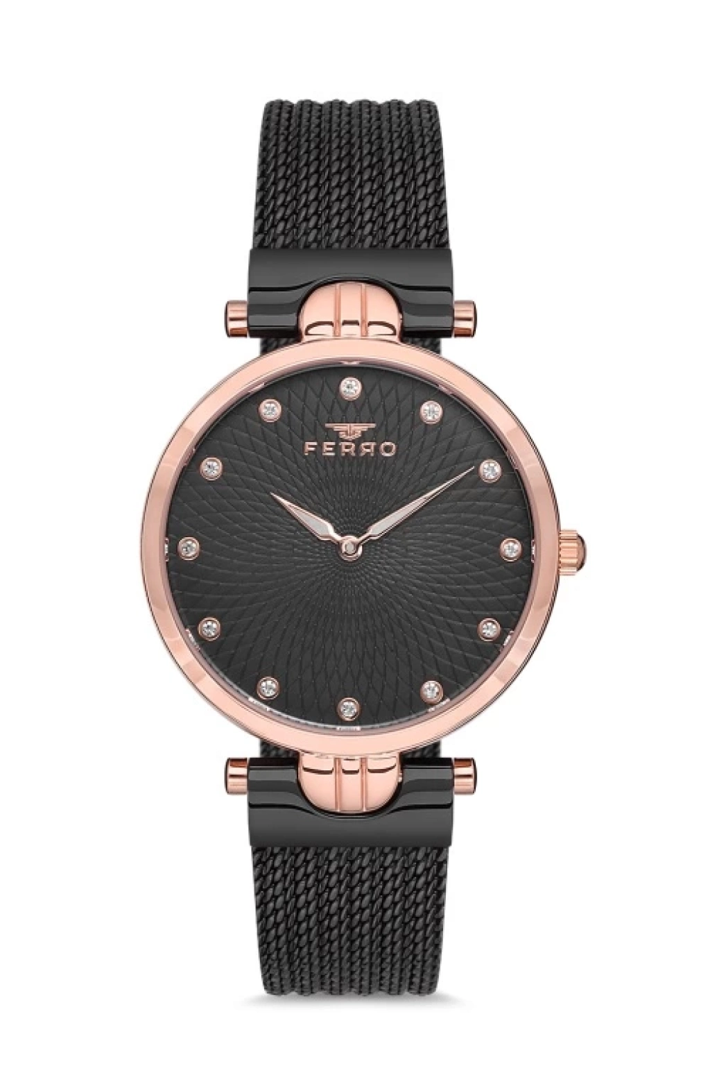 Ferro Siyah Hasır Kordon Kadın Kol Saati F21149C-R