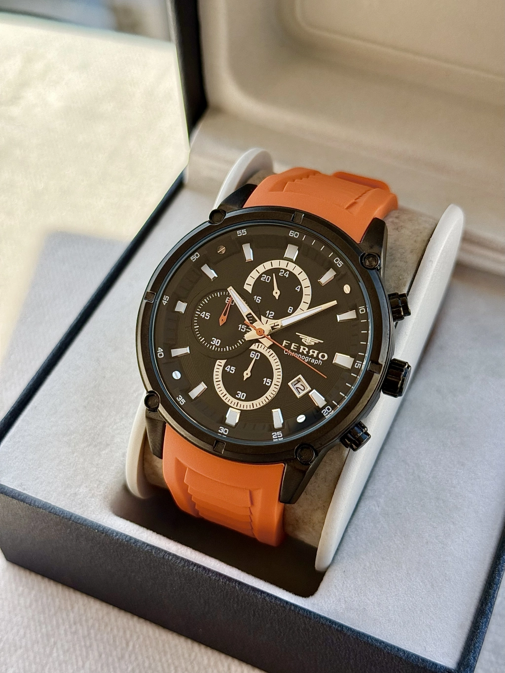 Japon Quartz Makine ile donatılmış olan Ferro Ferro Turunucu Silikon Kordon Erkek Kol Saati FM31363D-ZL Tüm Fonksiyonlar Aktif 3 ATM Su Geçirmez, yüksek hassasiyetli zaman ölçümü sunar. Uzun ömürlü pil gücü ve sessiz çalışma performansıyla mükemmel bir deneyim yaşatır.