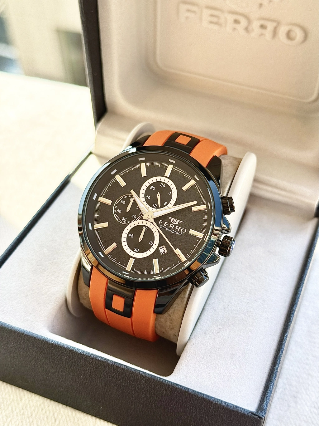 Japon Quartz Makine ile donatılmış olan Ferro Ferro Turunucu Silikon Kordon Erkek Kol Saati FM31380D-ZL Tüm Fonksiyonlar Aktif 3 ATM Su Geçirmez, yüksek hassasiyetli zaman ölçümü sunar. Uzun ömürlü pil gücü ve sessiz çalışma performansıyla mükemmel bir deneyim yaşatır.