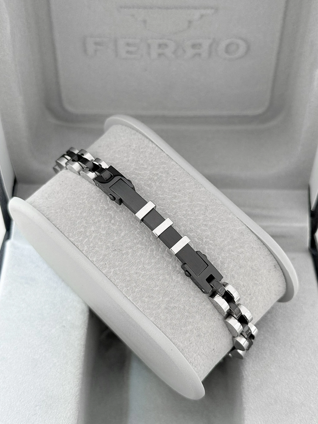 FERRO Gümüş ve Siyah Çelik Erkek Bileklik FRJ10125A-J 2 Yıl Garantili Hediye Paketli — Işıltılı Stil, Zarif Dokunuş