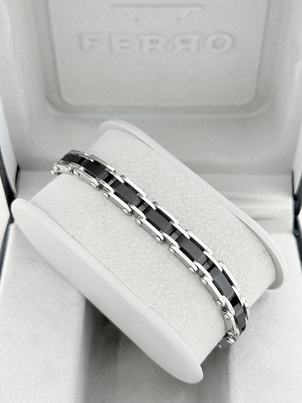 FERRO Gümüş ve Siyah Çelik Erkek Bileklik FRJ10141A-J 2 Yıl Garantili Hediye Paketli — Işıltılı Stil, Zarif Dokunuş
