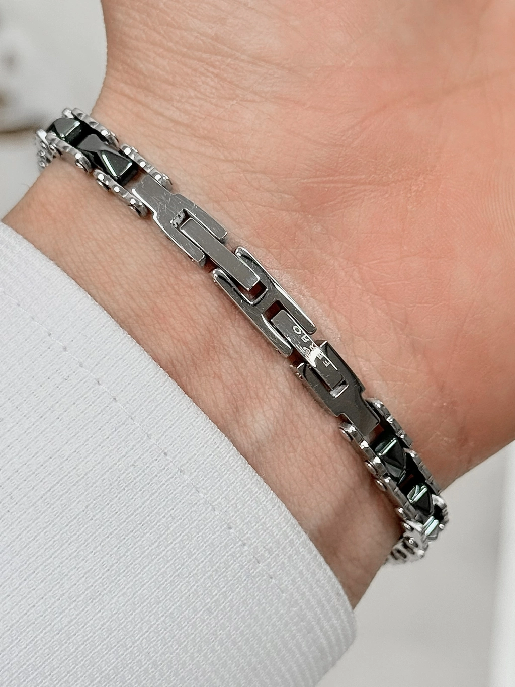 Paslanmaz çelikten üretilmiş bu şık model; sade ama dikkat çekici tasarımıyla her bilekte prestij sunar. Parlak yüzeyi ve sağlam yapısıyla hem görsel olarak güçlü hem de dayanıklı.