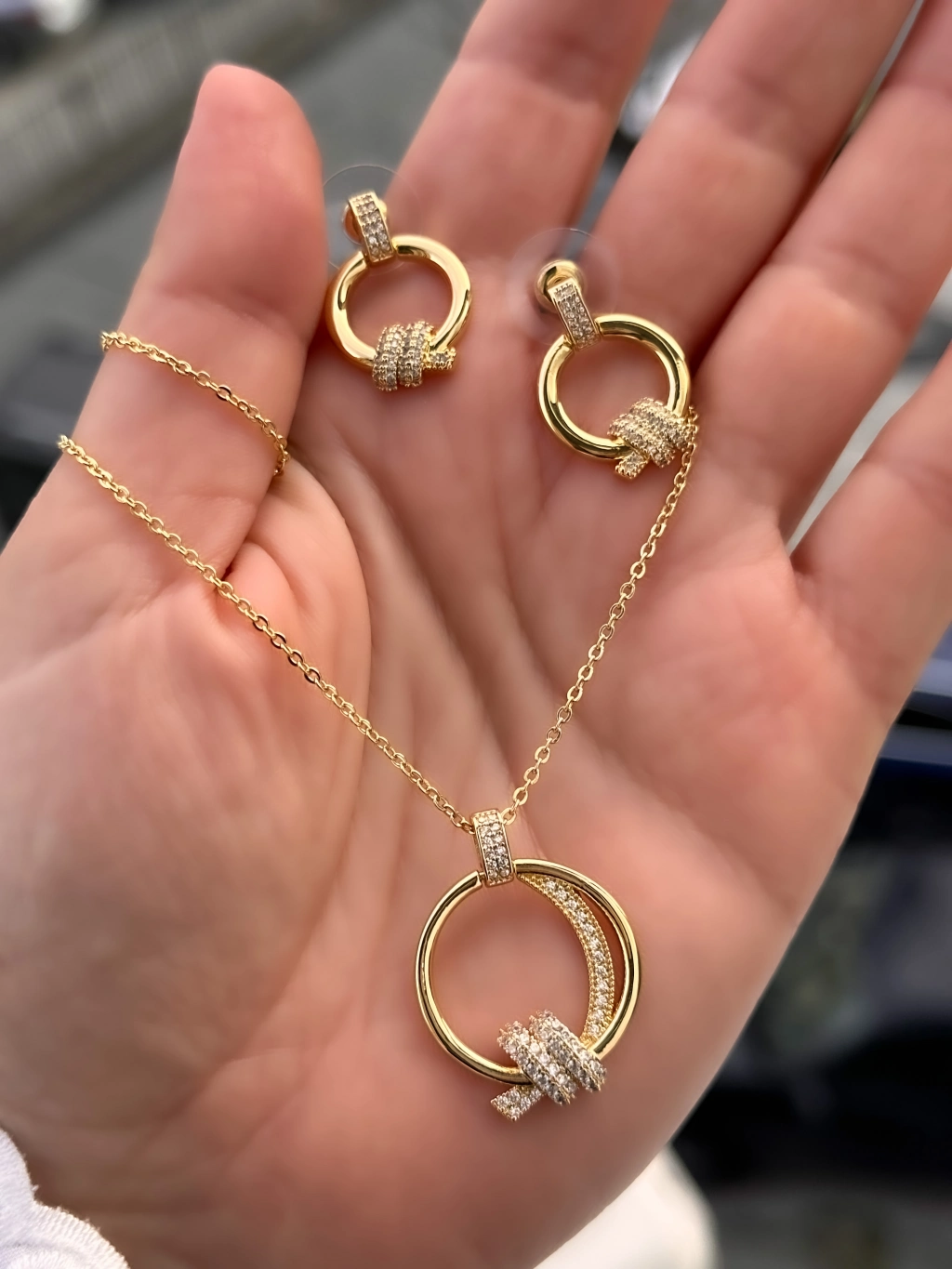 FERRO Sarı Çelik Kadın Küpe ve Kolye Set FRJW10012A-B 2 Yıl Garantili Hediye Paketli — Işıltılı Stil, Zarif Dokunuş