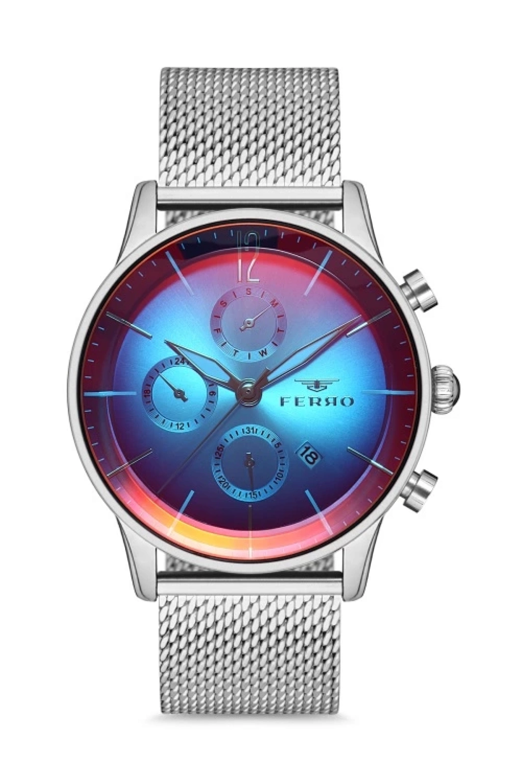 Ferro Gümüş Çelik Kordon Erkek Kol Saati FM43027A-A7 Tüm Fonksiyonlar Aktif 3ATM Su Geçirmez