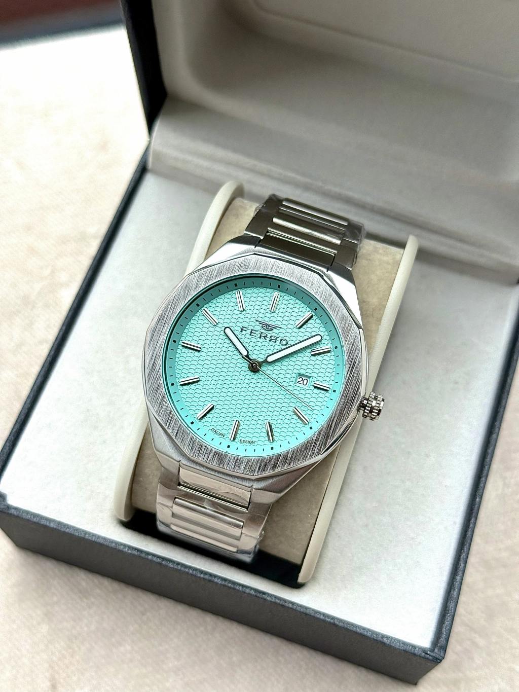 Günün her anında zarafetle taşıyabileceğiniz bu saat, ofisten davete kadar stilinizi tamamlar. Ferro ile zamanı değil, tarzınızı seçin.