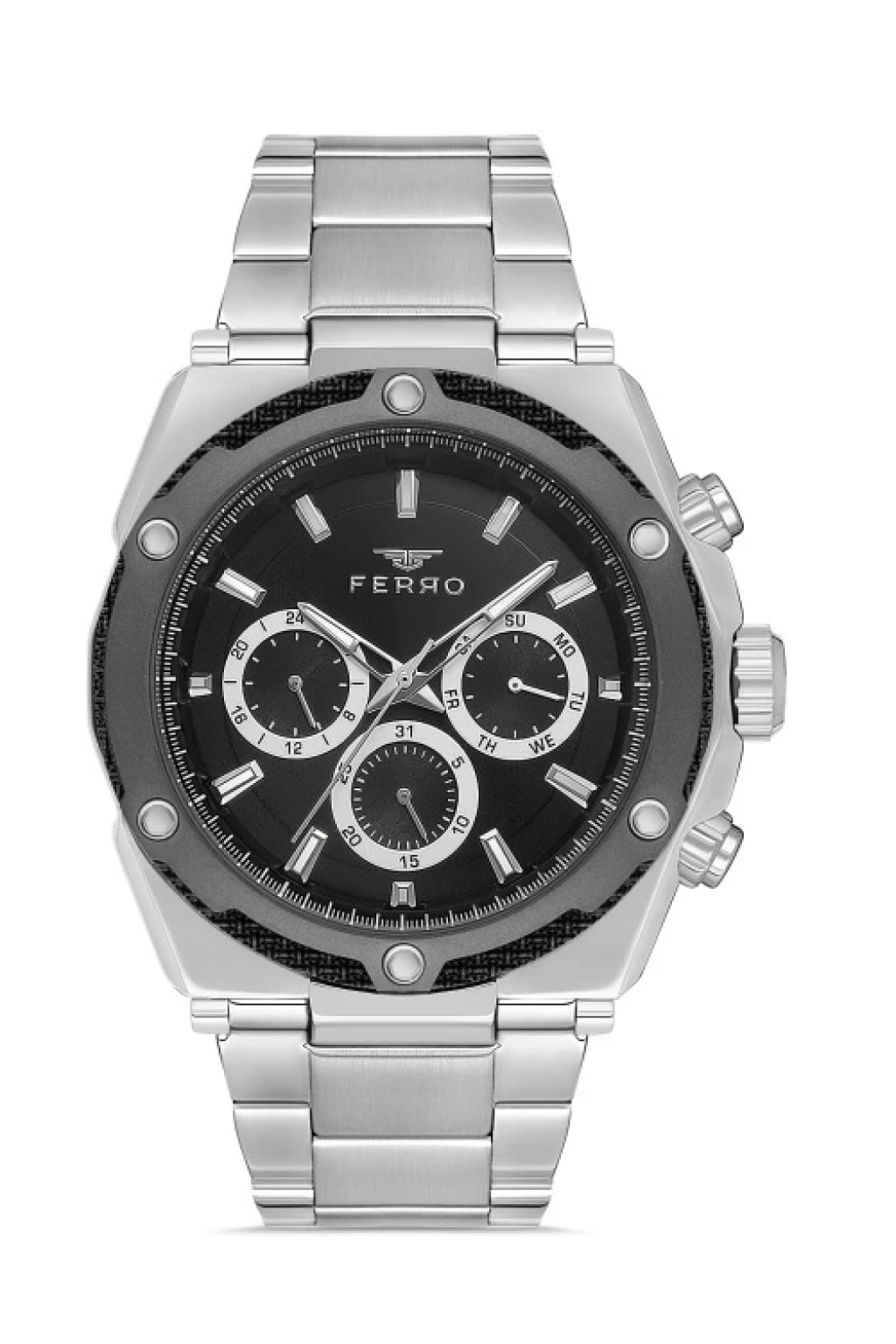 FERRO Ferro Gümüş Çelik Kordon Erkek Kol Saati FM11397A-J2 — Işıltılı Stil, Zarif Dokunuş