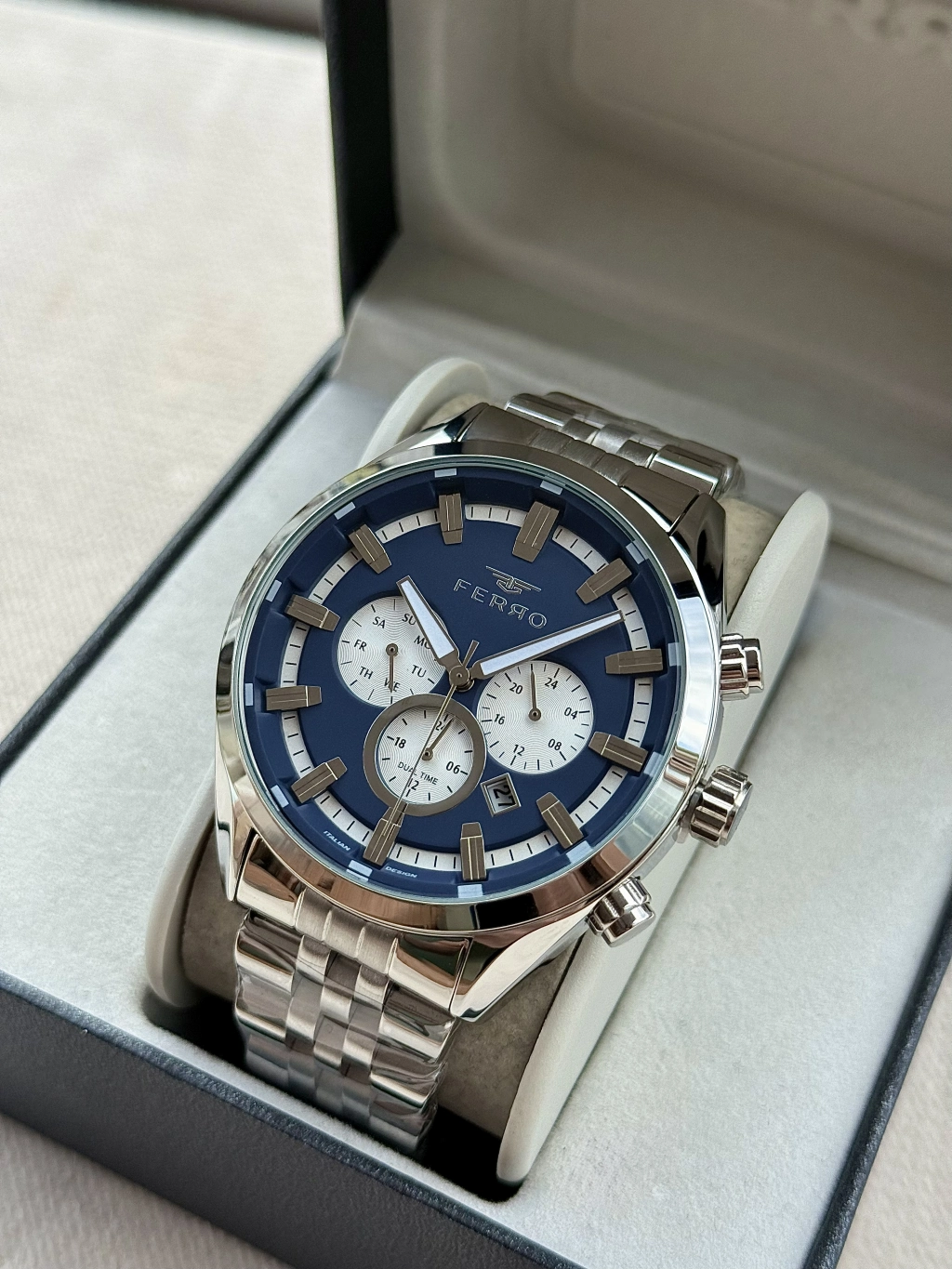 Günün her anında zarafetle taşıyabileceğiniz bu saat, ofisten davete kadar stilinizi tamamlar. Ferro ile zamanı değil, tarzınızı seçin.