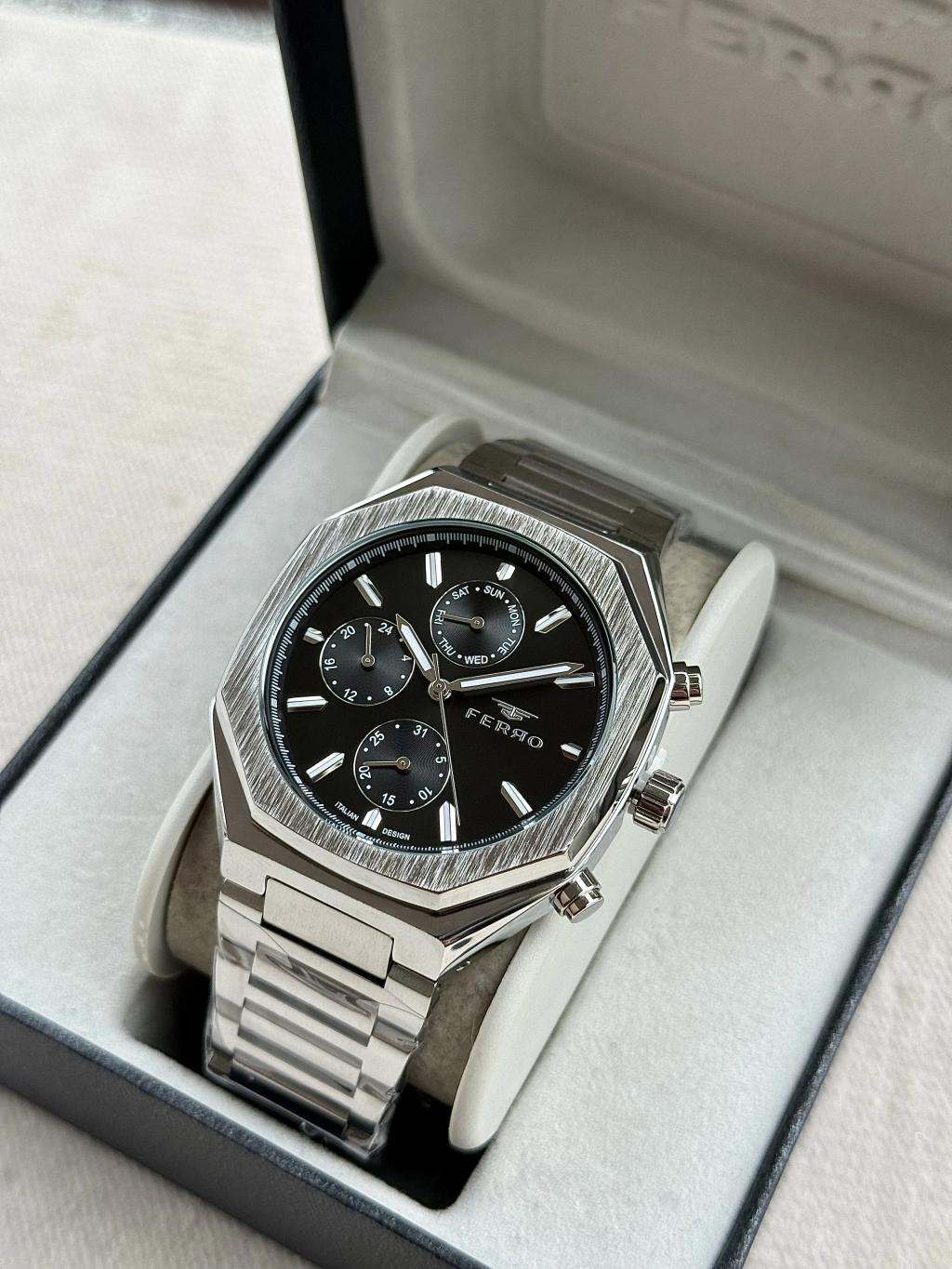 FERRO Ferro Gümüş Çelik Kordon Erkek Kol Saati FM11522AWT-A2 Fonksiyonları Aktif 3ATM Su Geçirmez — Işıltılı Stil, Zarif Dokunuş
