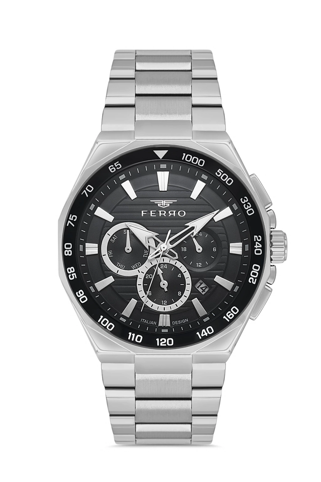 FERRO Ferro Gümüş Çelik Kordon Erkek Kol Saati FM11650A-A2 Fonksiyonları Aktif 3 ATM Su Geçirmez — Işıltılı Stil, Zarif Dokunuş