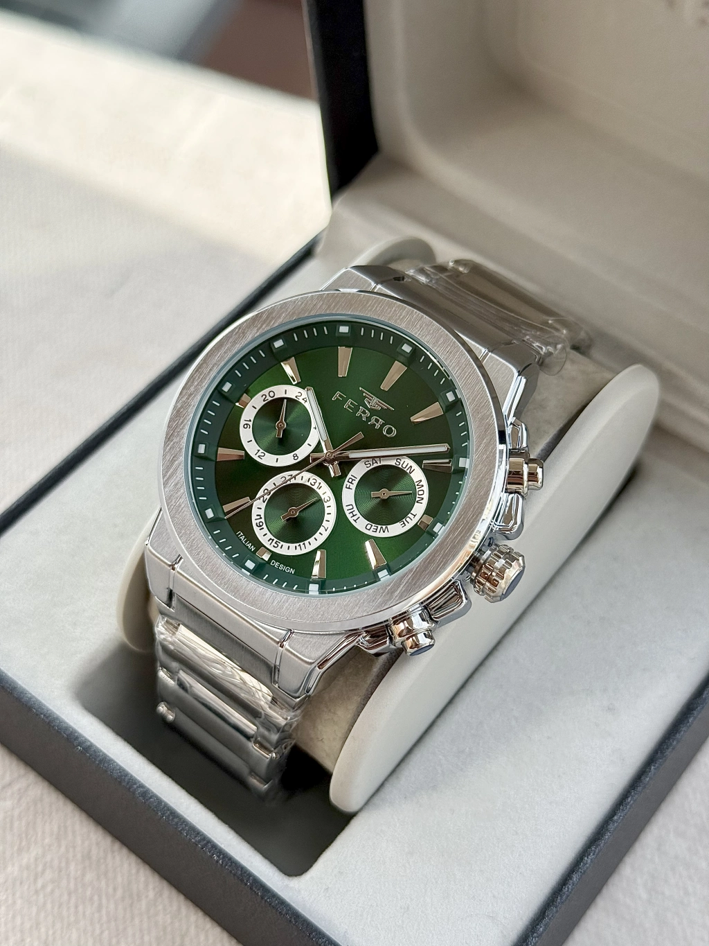 FERRO Ferro Gümüş Çelik Kordon Erkek Kol Saati FM40123A-A6 Tüm Fonksiyonlar Aktif 3 ATM Su Geçirmez — Işıltılı Stil, Zarif Dokunuş