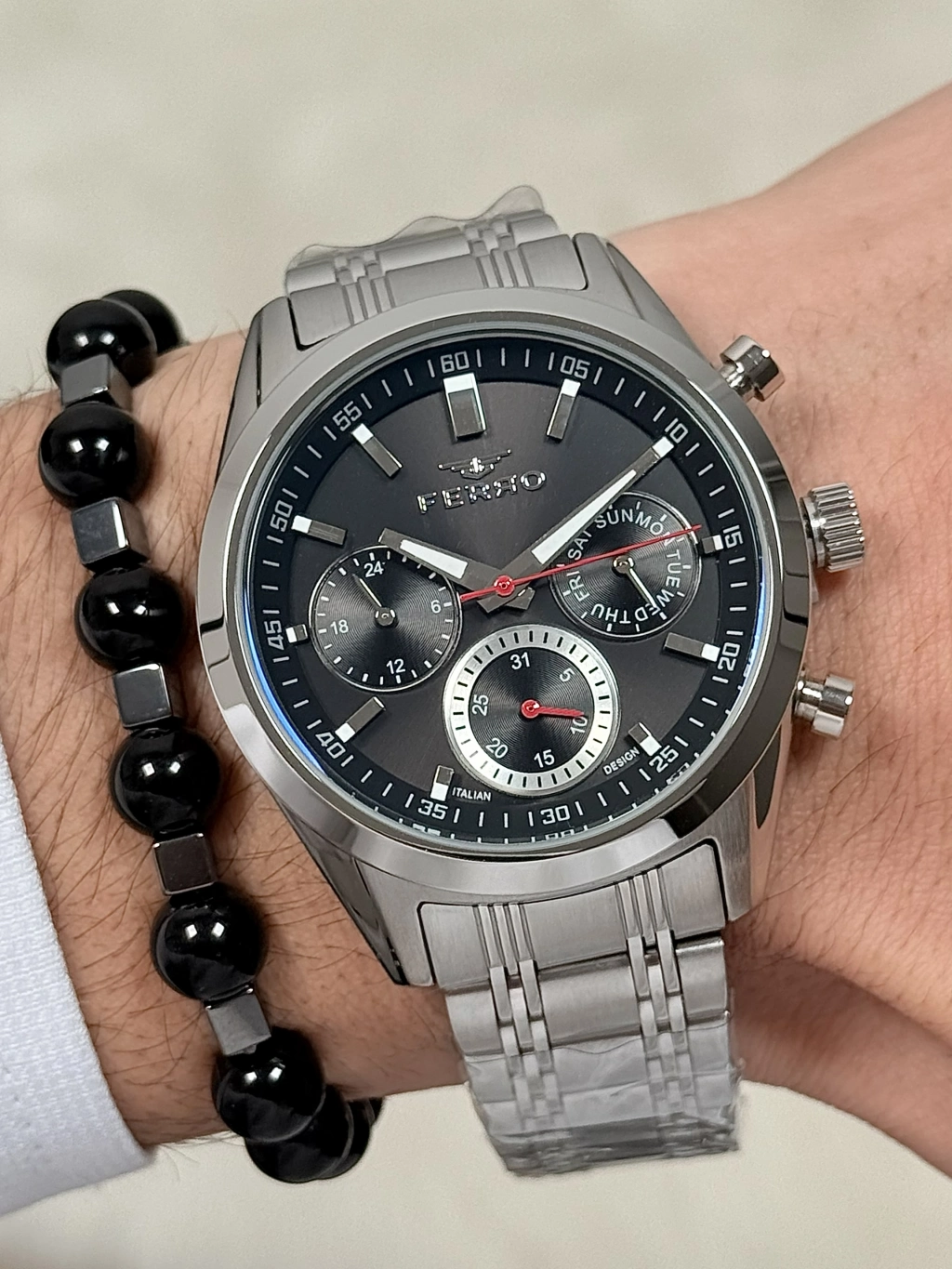 FERRO Ferro Gümüş Çelik Kordon Erkek Kol Saati FM40152A-A2 Tüm Fonksiyonlar Aktif 3 ATM Su Geçirmez — Işıltılı Stil, Zarif Dokunuş