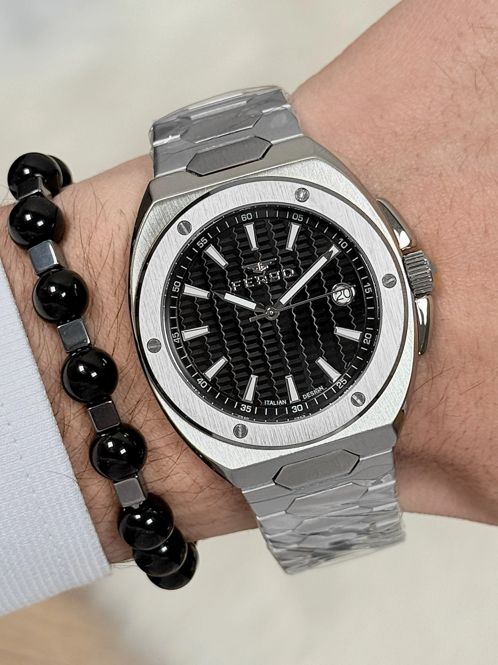 Günün her anında zarafetle taşıyabileceğiniz bu saat, ofisten davete kadar stilinizi tamamlar. Ferro ile zamanı değil, tarzınızı seçin.