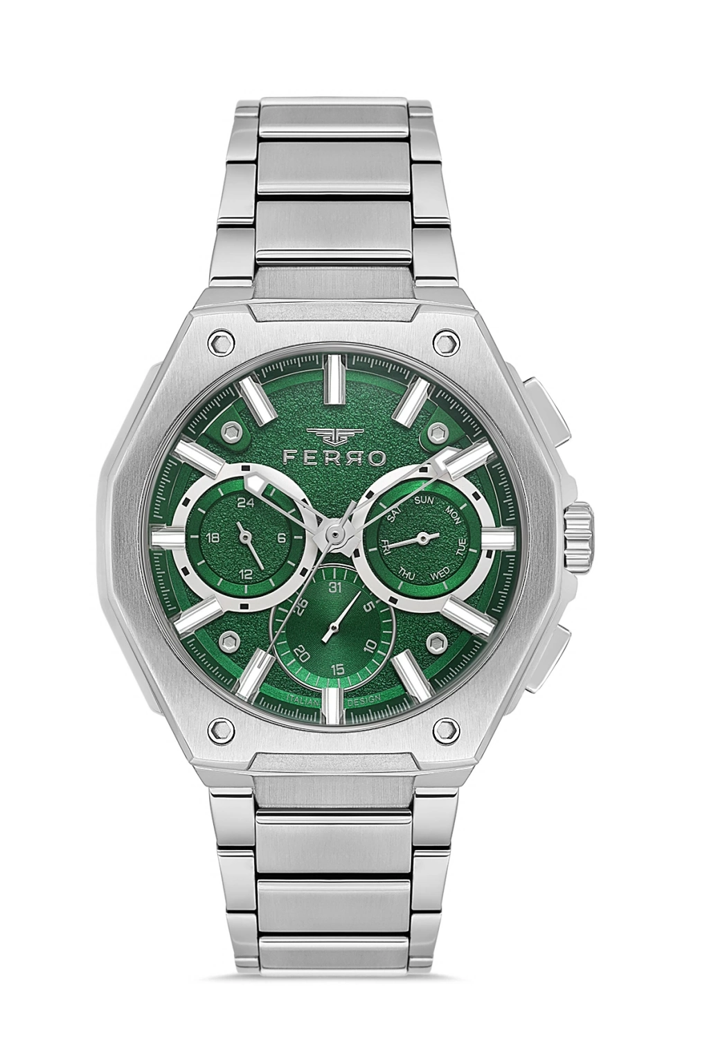 FERRO Ferro Gümüş Çelik Kordon Erkek Kol Saati FM43023AWT-A6 Tüm Fonksiyonlar Aktif 3ATM Su Geçirmez — Işıltılı Stil, Zarif Dokunuş