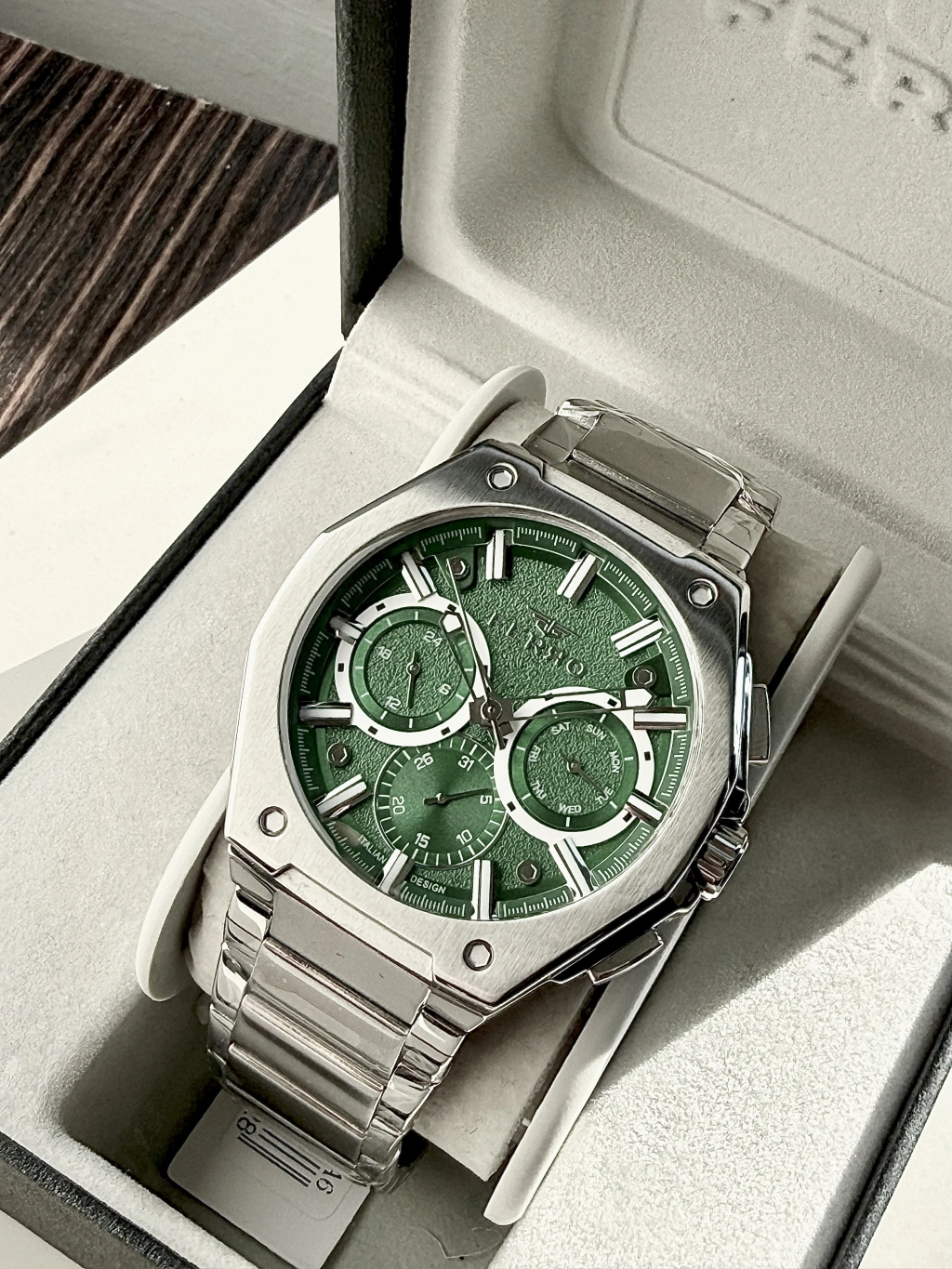 Japon Quartz Makine ile donatılmış olan Ferro Ferro Gümüş Çelik Kordon Erkek Kol Saati FM43023AWT-A6 Tüm Fonksiyonlar Aktif 3ATM Su Geçirmez, yüksek hassasiyetli zaman ölçümü sunar. Uzun ömürlü pil gücü ve sessiz çalışma performansıyla mükemmel bir deneyim yaşatır.
