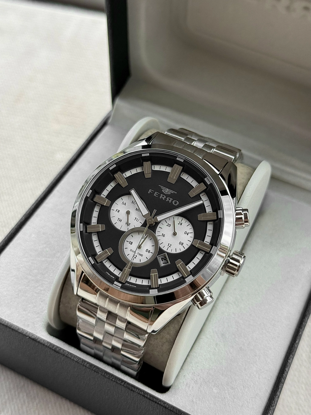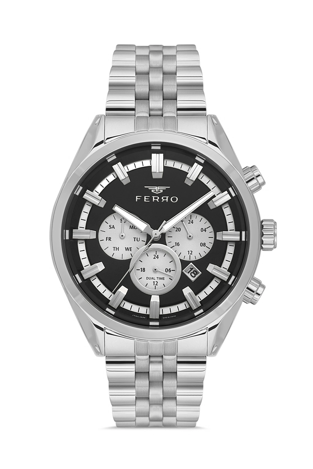 FERRO Ferro Gümüş Çelik Kordon Erkek Kol Saati FM43027A-A2 Tüm Fonksiyonlar Aktif 3ATM Su Geçirmez — Işıltılı Stil, Zarif Dokunuş