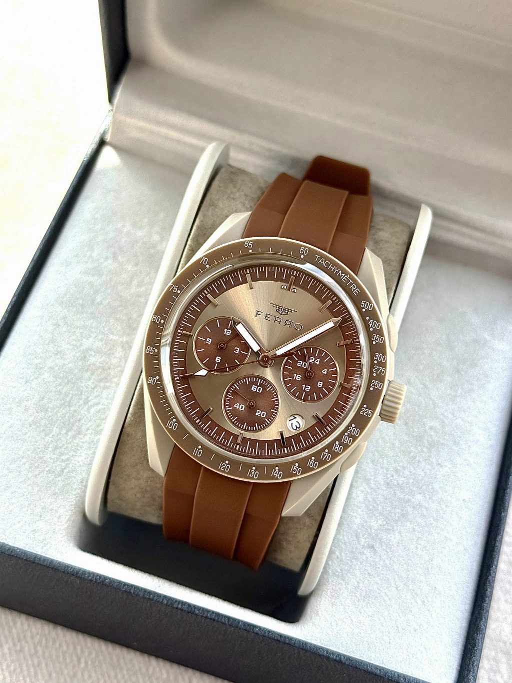 FERRO Ferro Kahverengi Silikon Kordon Kol Saati FM11401D-F6 Fonksiyonları Aktif 3ATM Su Geçirmez — Işıltılı Stil, Zarif Dokunuş