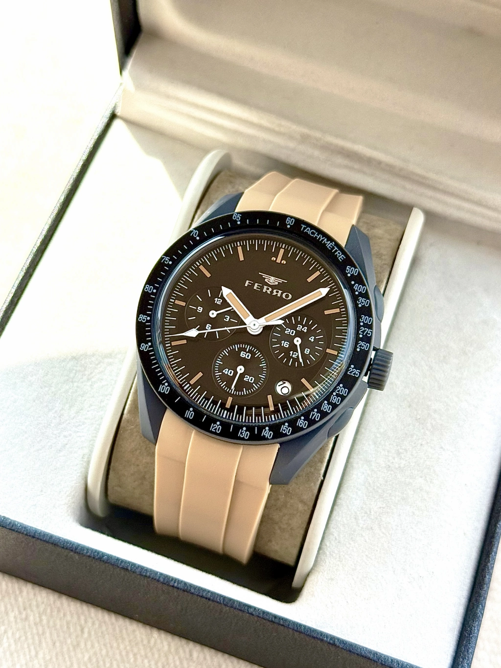 • Model: Ferro Kahverengi Silikon Kordon Kol Saati FM11401D-X Fonksiyonları Aktif 3ATM Su Geçirmez
