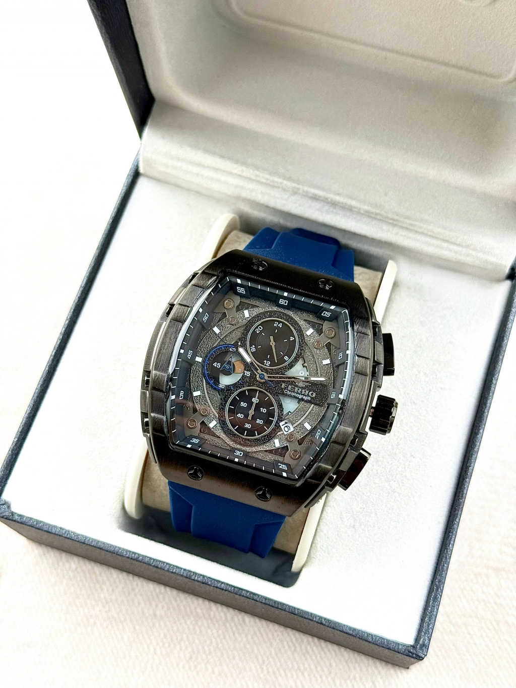 FERRO Ferro Lacivert Silikon Kordon Erkek Kol Saati FM31346D-ZA2 Fonksiyonları Aktif 3 ATM Su Geçirmez — Işıltılı Stil, Zarif Dokunuş