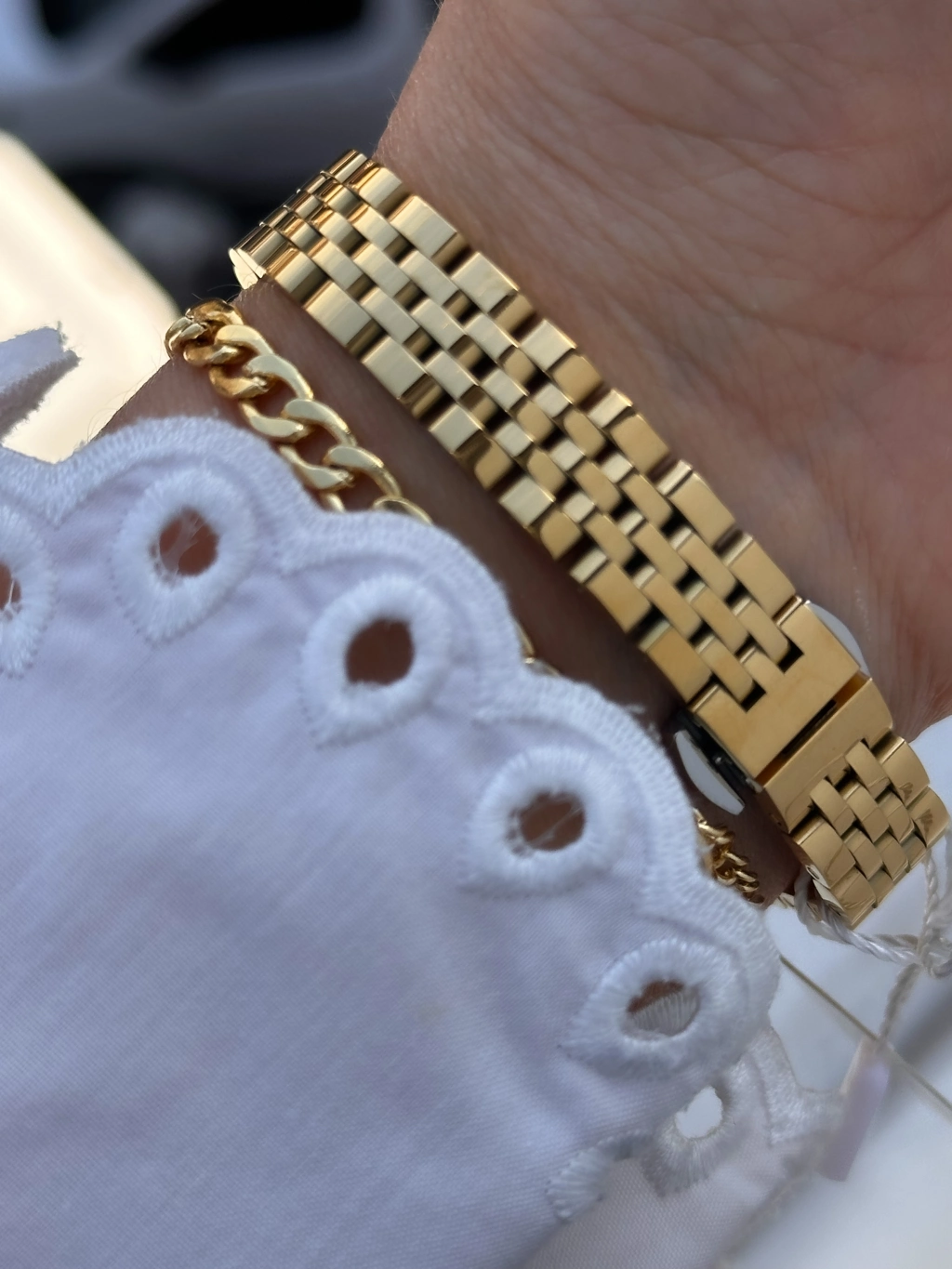 Paslanmaz çelikten üretilmiş bu şık model; sade ama dikkat çekici tasarımıyla her bilekte prestij sunar. Parlak yüzeyi ve sağlam yapısıyla hem görsel olarak güçlü hem de dayanıklı.