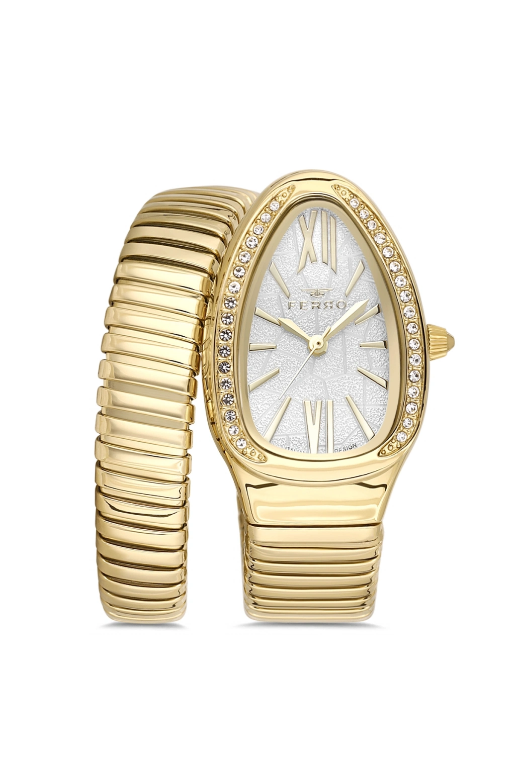 FERRO Ferro Sarı Çelik Kordon Kadın Kol Saati FL40154A-B 3ATM Su Geçirmez 2 Yıl Garantili HediyePaketli — Işıltılı Stil, Zarif Dokunuş
