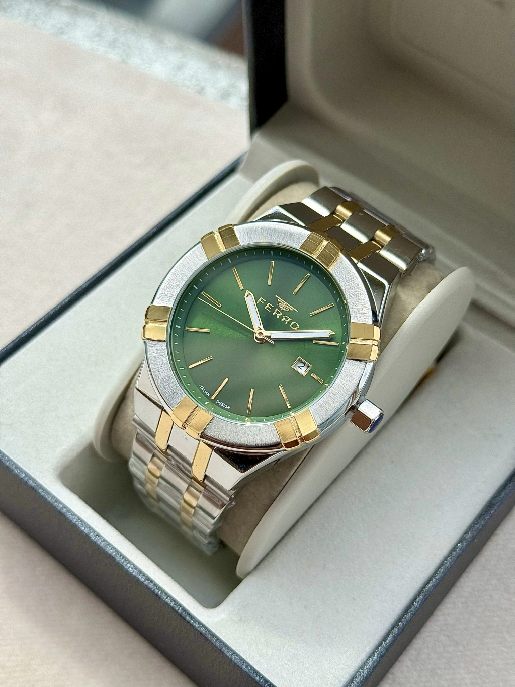 Günün her anında zarafetle taşıyabileceğiniz bu saat, ofisten davete kadar stilinizi tamamlar. Ferro ile zamanı değil, tarzınızı seçin.
