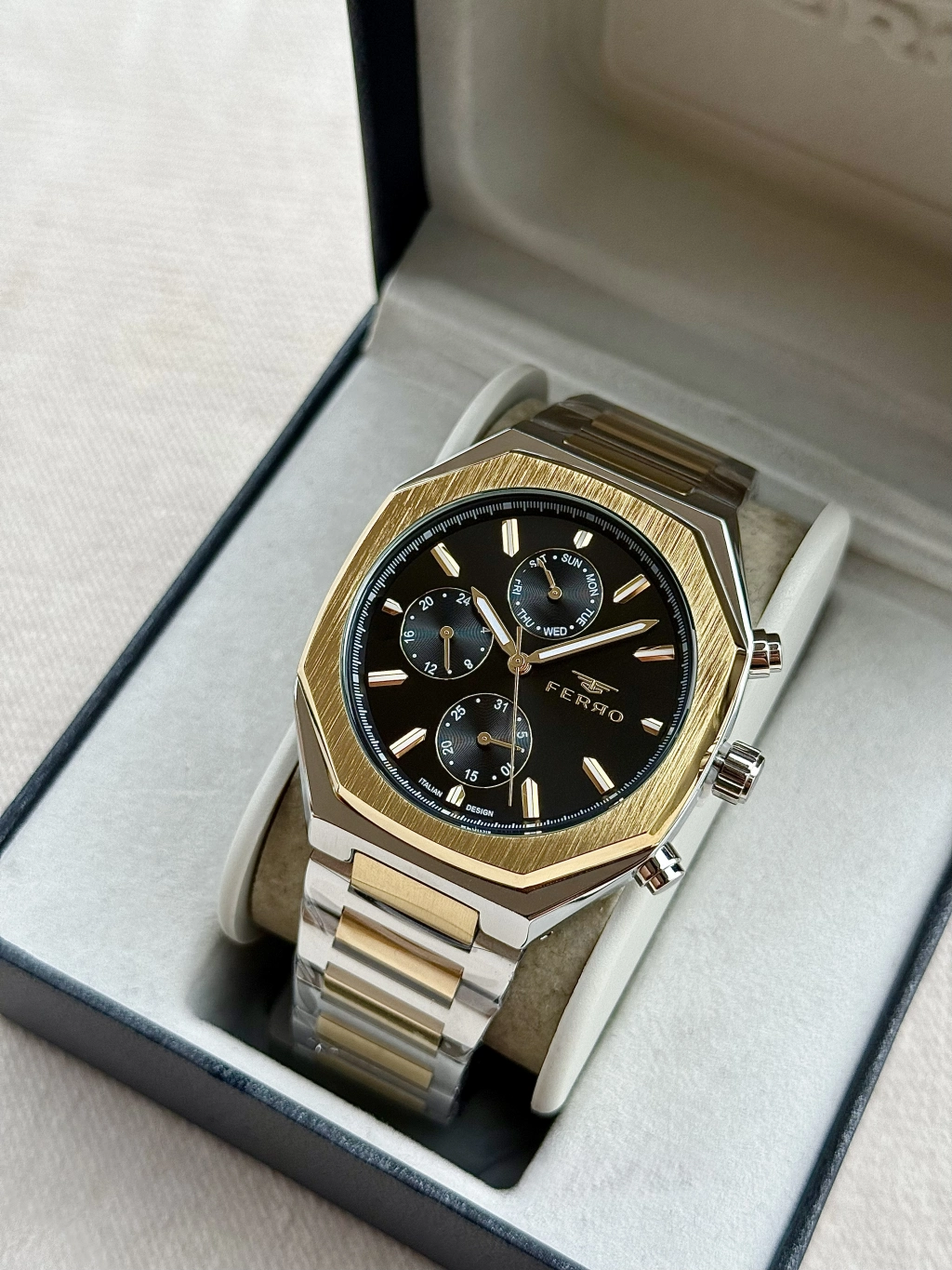 ⏱️ Ferro Ferro Sarı ve Gümüş Çelik Kordon Erkek Kol Saati FM11522AWT-D2 Fonksiyonları Aktif 3ATM Su Geçirmez – Su Geçirmez, 2 Yıl Garantili, Japon Mekanizmalı Saatler