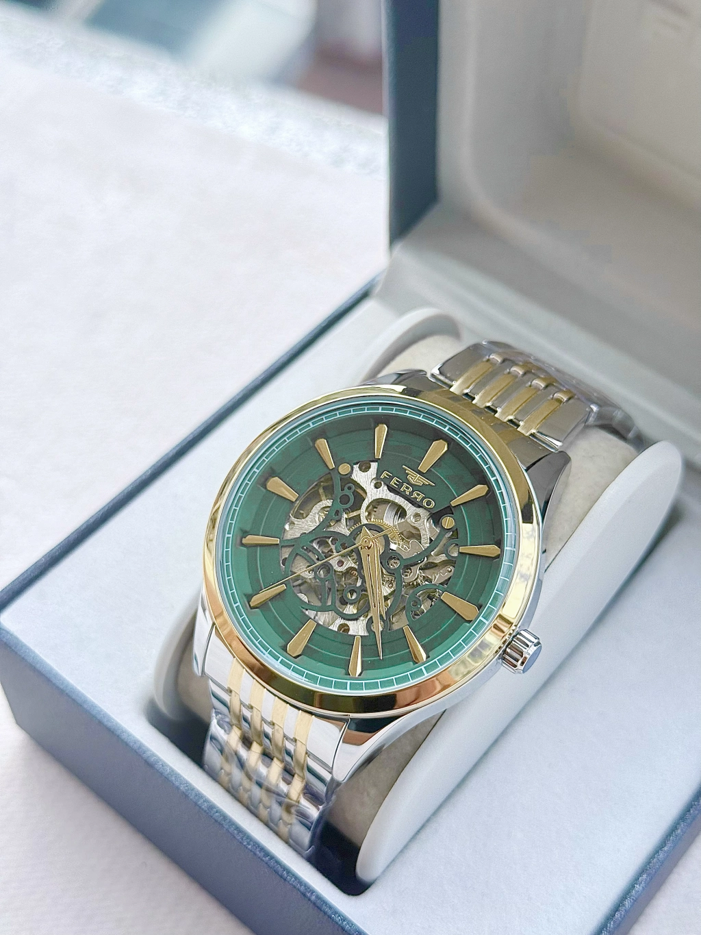 FERRO Ferro Sarı ve Gümüş Çelik Kordon Erkek Kol Saati FM31440A-D6 Otomatik Makine 3 ATM Su Geçirmez — Işıltılı Stil, Zarif Dokunuş