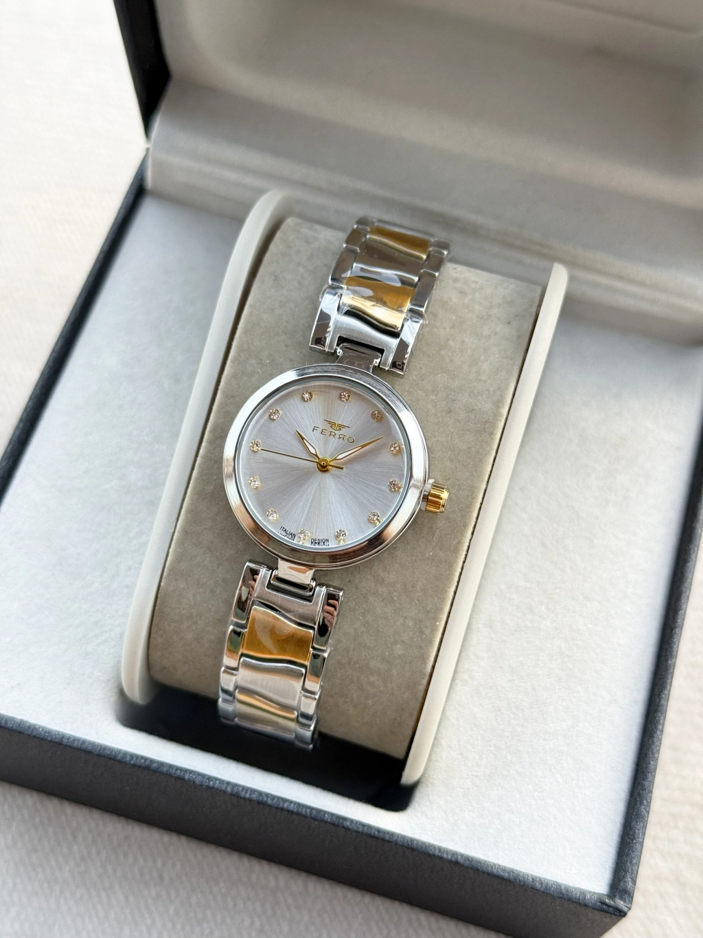 FERRO Ferro Sarı ve Gümüş Çelik Kordon Kadın Kol Saati FL21617AWT-D 3ATM Su Geçirmez 2 Yıl Garantili — Işıltılı Stil, Zarif Dokunuş