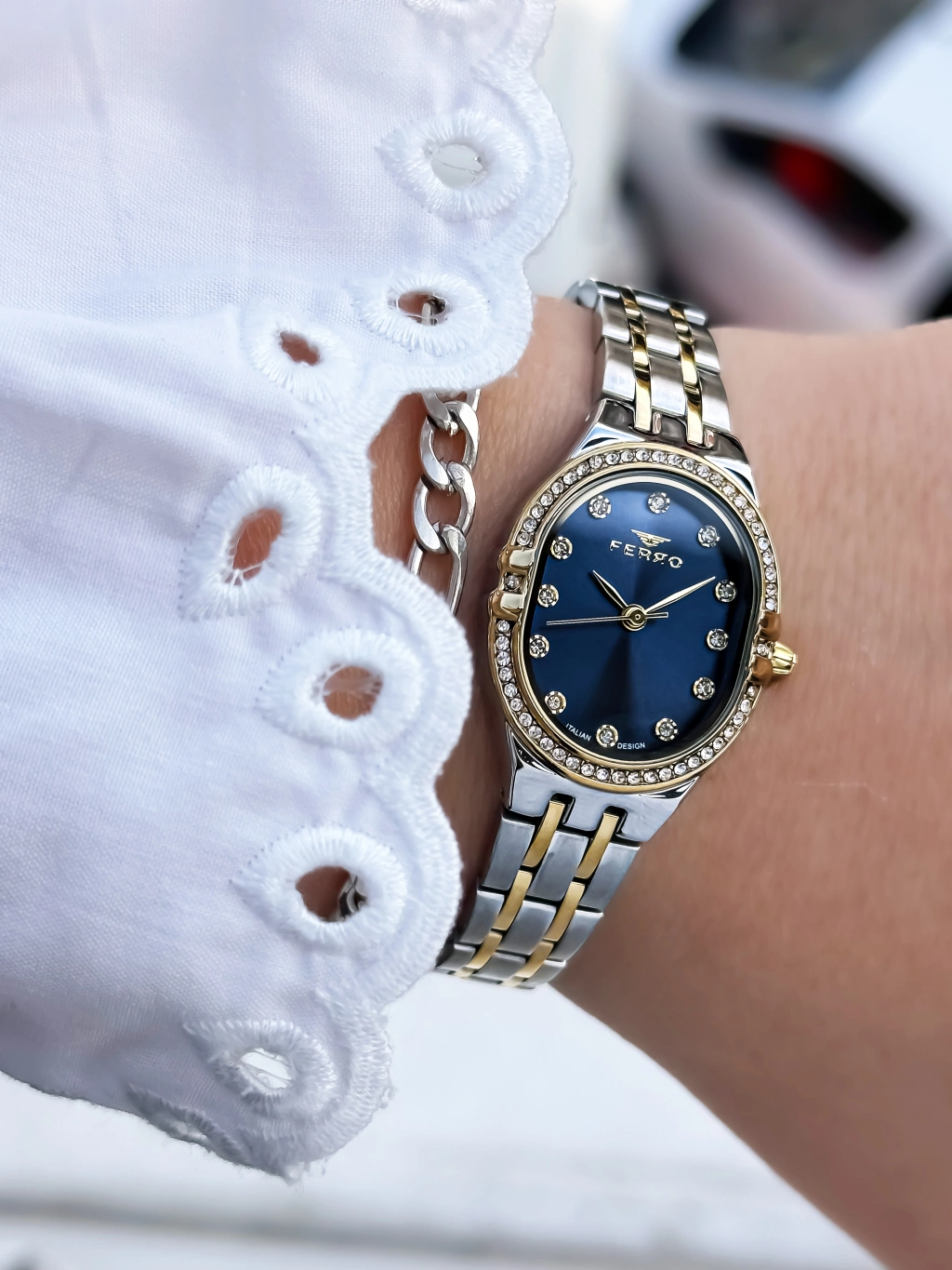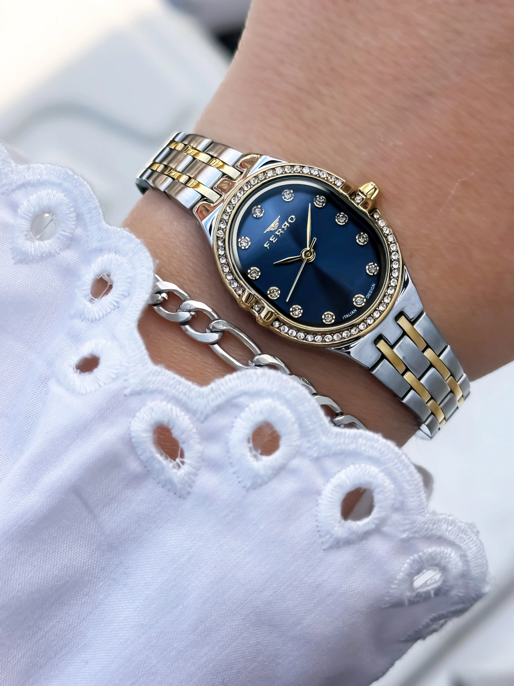 FERRO Ferro Sarı ve Gümüş Çelik Kordon Kadın Kol Saati FL21645A-D3 3ATM Su Geçirmez 2 Yıl Garantili — Işıltılı Stil, Zarif Dokunuş