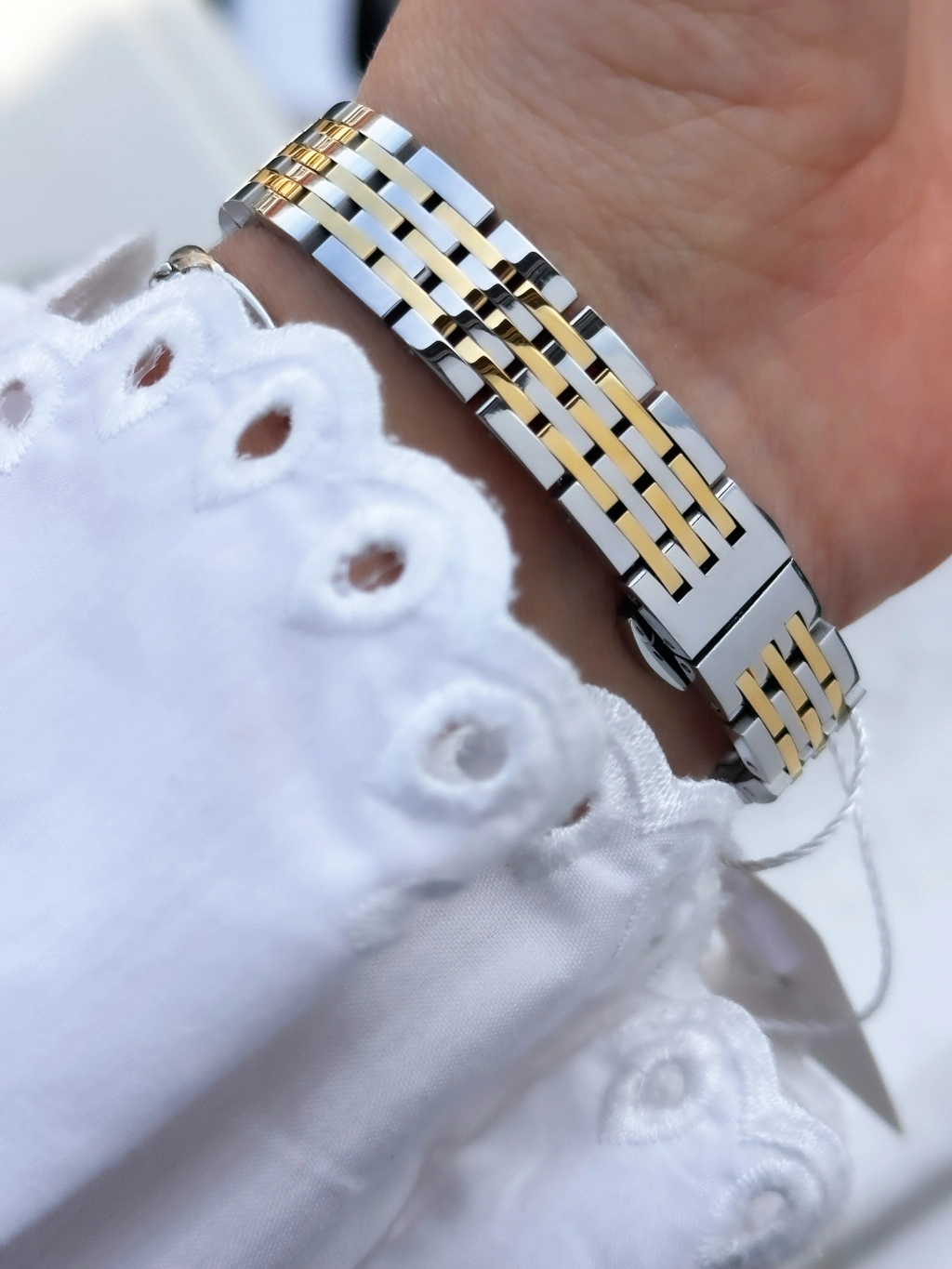 Paslanmaz çelikten üretilmiş bu şık model; sade ama dikkat çekici tasarımıyla her bilekte prestij sunar. Parlak yüzeyi ve sağlam yapısıyla hem görsel olarak güçlü hem de dayanıklı.
