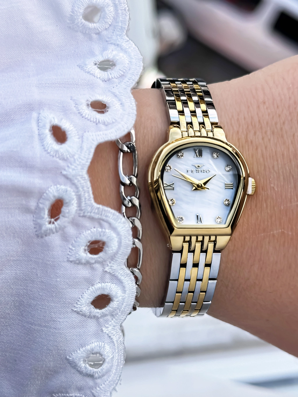 FERRO Ferro Sarı ve Gümüş Çelik Kordon Kadın Kol Saati FL88745A-D 3 ATM Su Geçirmez 2 Yıl Garantili Hediye Paketli — Işıltılı Stil, Zarif Dokunuş