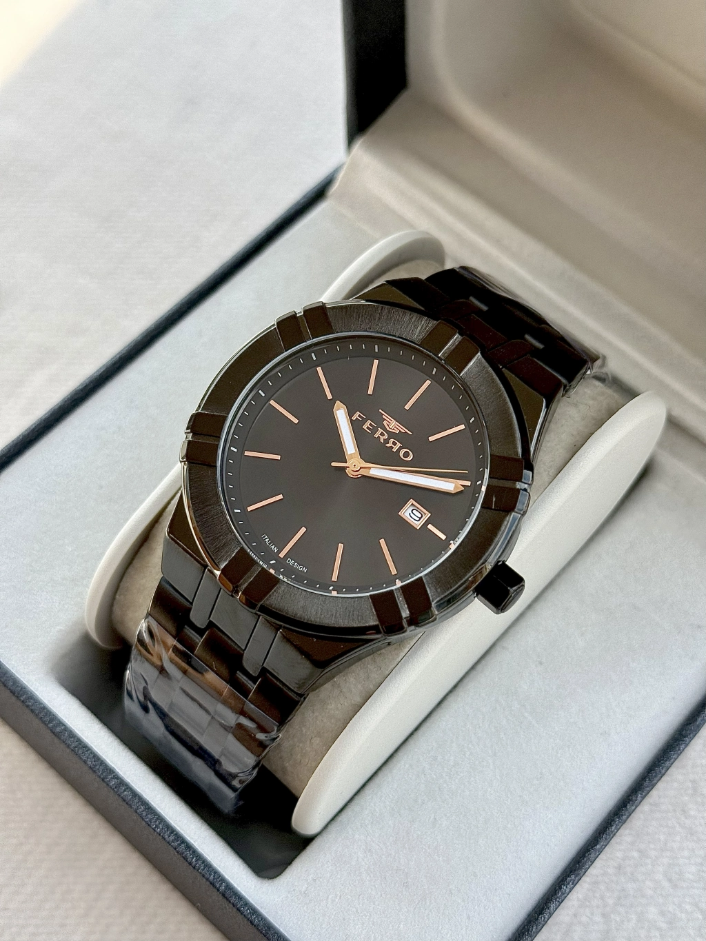 Günün her anında zarafetle taşıyabileceğiniz bu saat, ofisten davete kadar stilinizi tamamlar. Ferro ile zamanı değil, tarzınızı seçin.